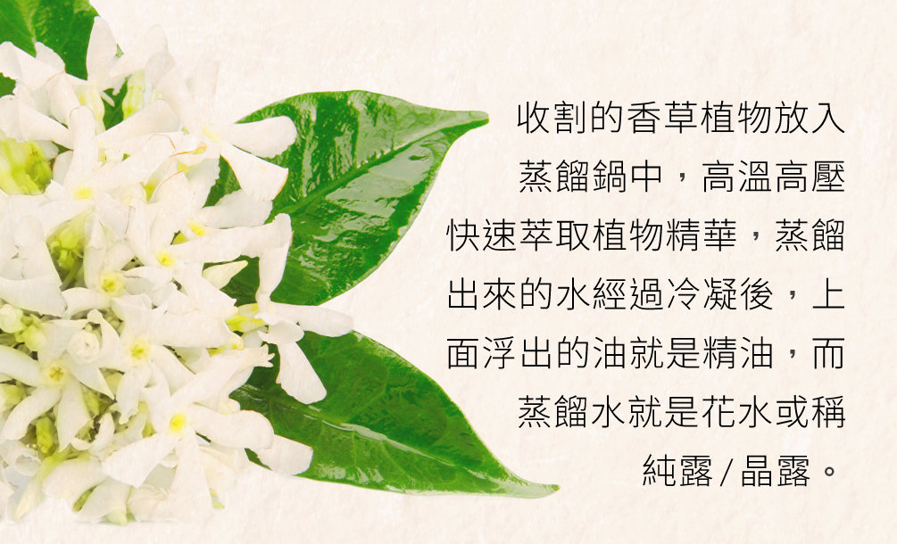 • 純露含有微量的精油,且相對安全許多(因為充分稀釋了)。
