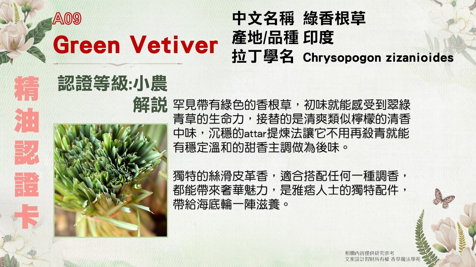 綠香根草的泥土香氣像一面心靈的鏡子,幫助你清理雜念,找到屬於自己的答案。
