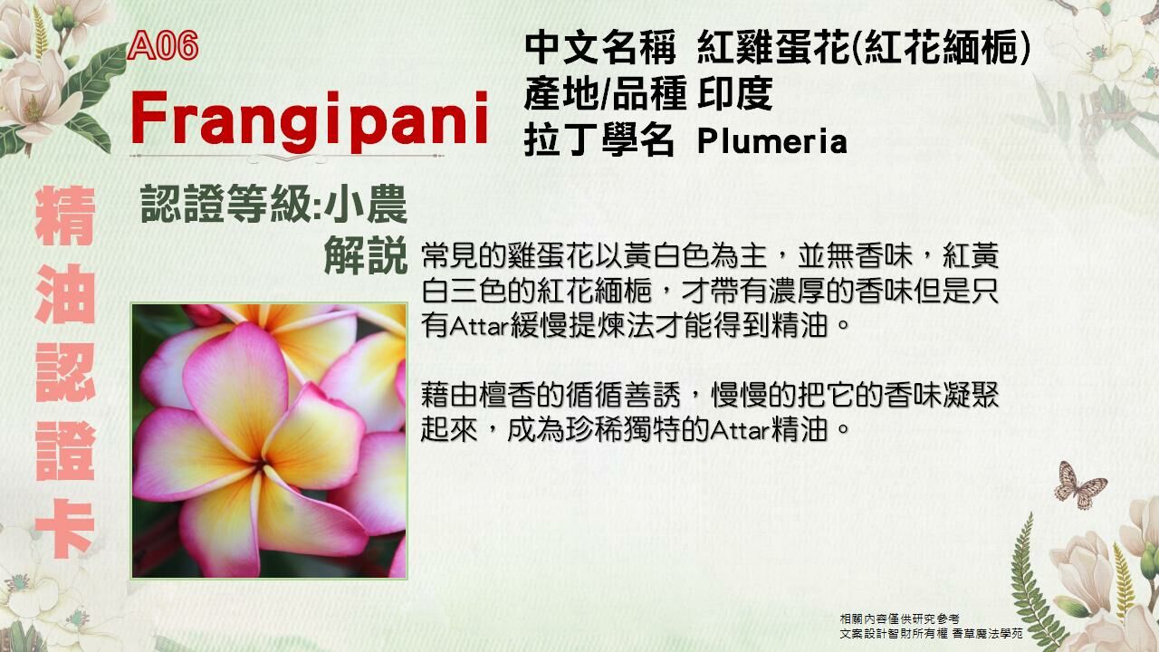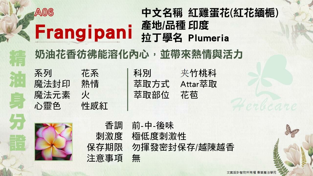 紅雞蛋花的花香像陽光一樣,喚醒你內在的活力與熱情,讓你重燃對生活的渴望。