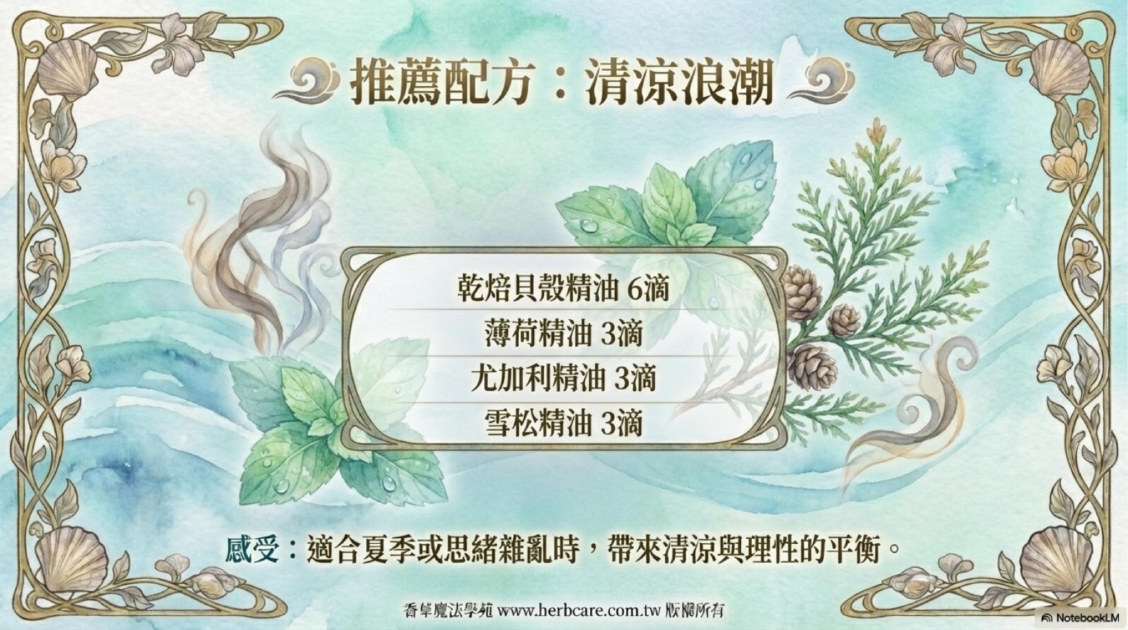 適合夏季或思緒雜亂時,帶來清涼與理性平衡。