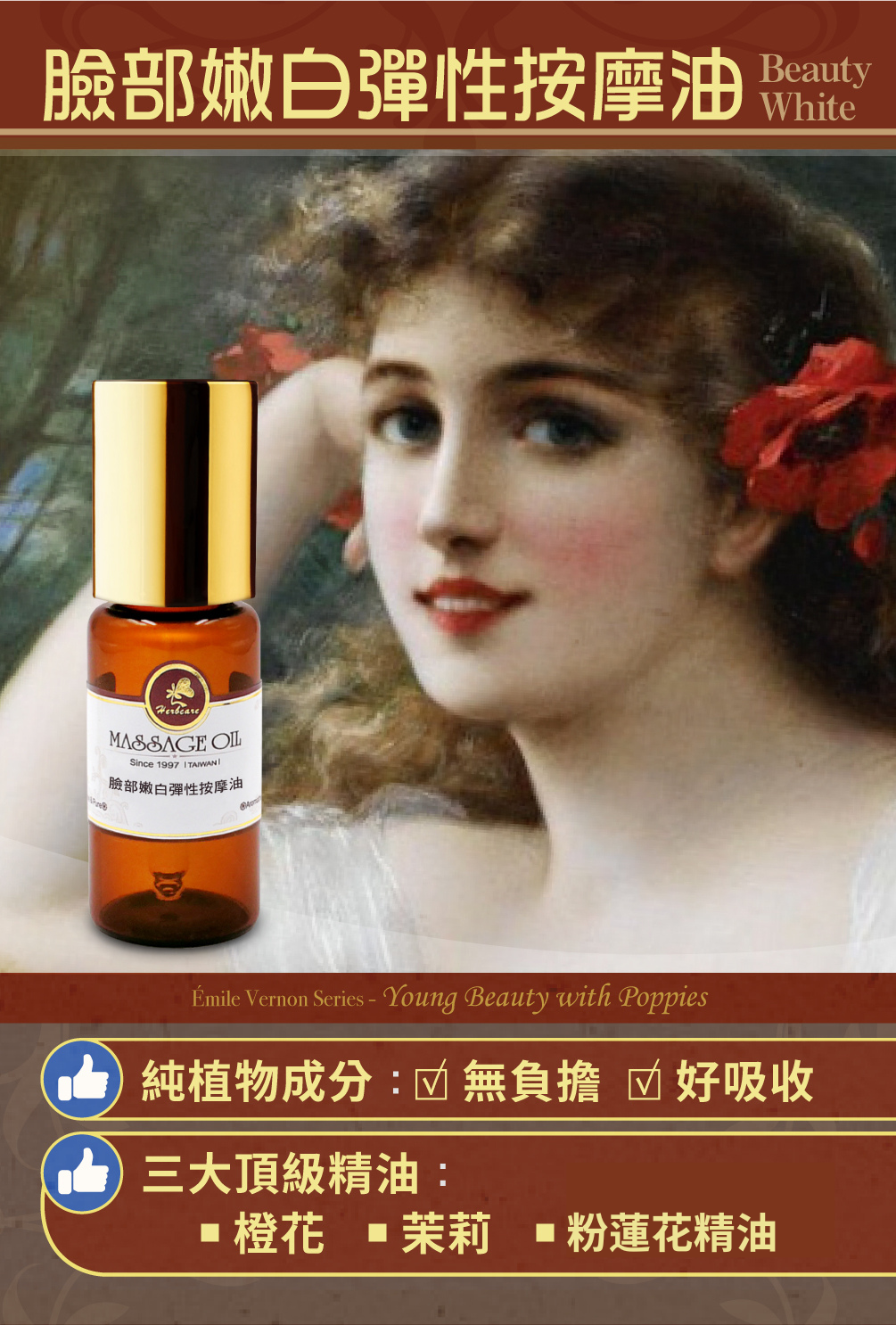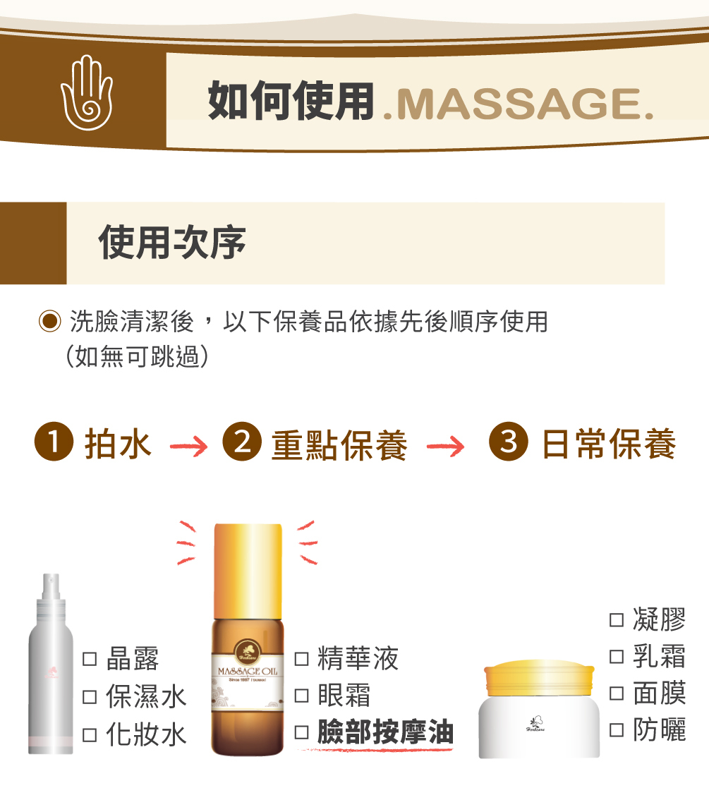 給你的肌膚一個會「發光」的理由!臉部嫩白彈性按摩油,含有粉蓮花attar精油、珊瑚茉莉attar精油以及橙花、乳香、薰衣草、胡蘿蔔籽精油,輔以玫瑰果和甜杏仁油的溫潤呵護,讓肌膚在每次保養後如蓮花初綻般柔嫩,為肌膚注入嫩白能量,還能散發一股令人傾心的微香,讓光澤從內而外散發!