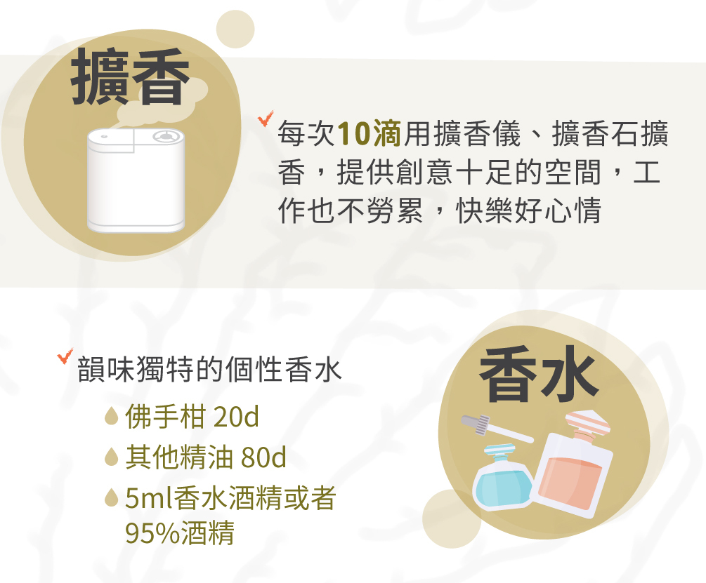 佛手柑精油應用廣泛,不論是身心提振或居家淨化,都能找到適合的搭配。