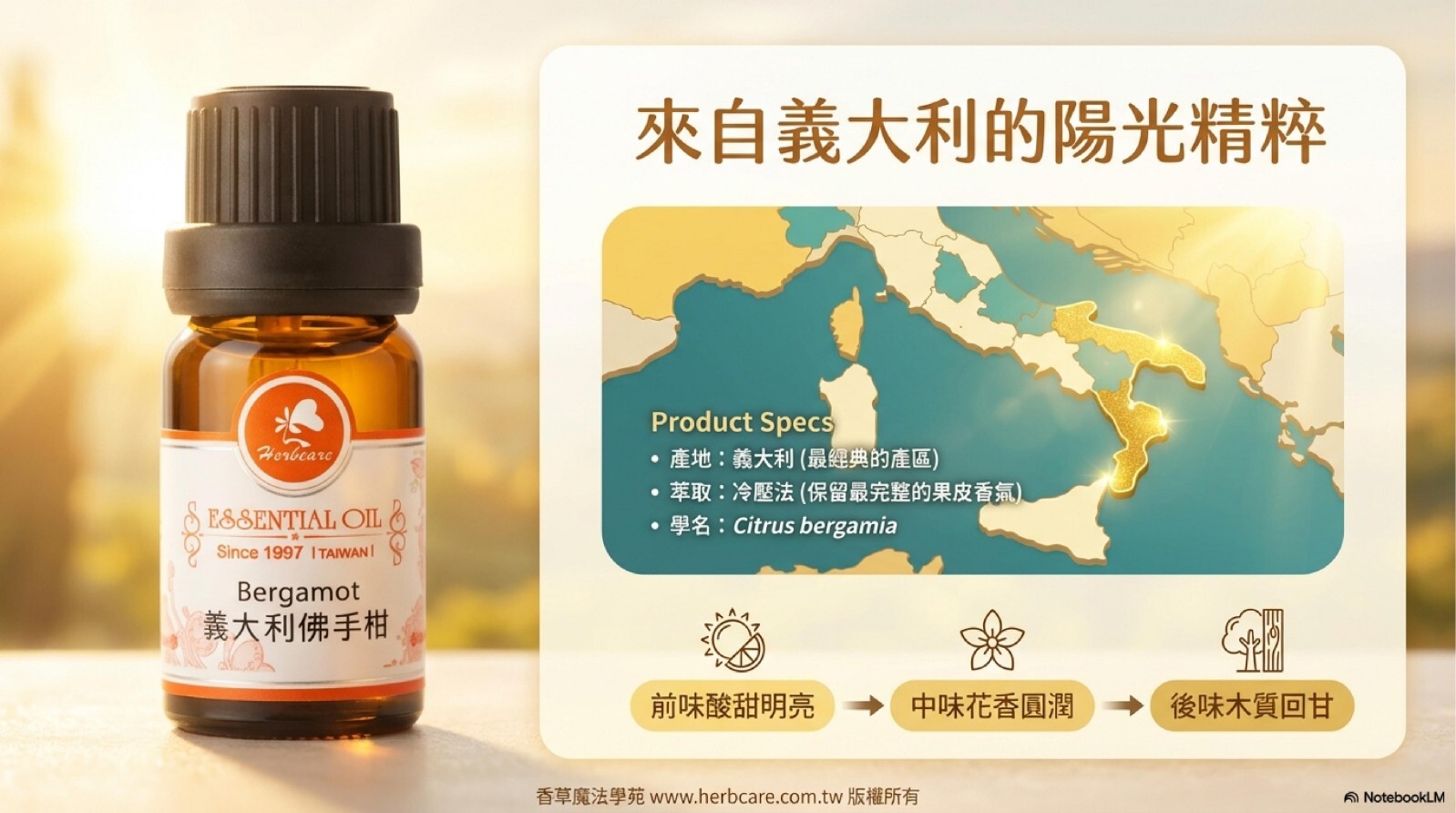 你是否常感到心情鬱悶、缺乏動力,渴望一股簡單卻強大的力量來點亮生活?佛手柑精油,這款被譽為「心靈陽光」的柑橘類精油,正是你的快樂製造機。它清新、帶有花香與微苦的香氣,彷彿能瞬間提振心情,為你帶來一整天的好精神。