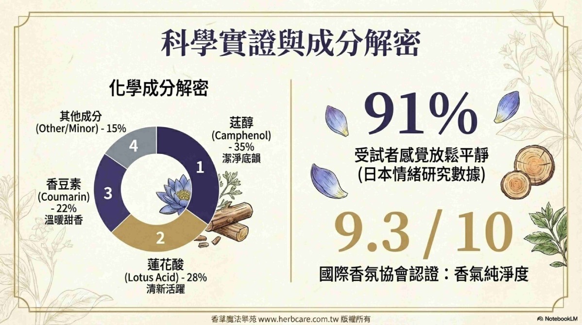 • 日本情緒研究顯示91%受試者感覺放鬆平靜
