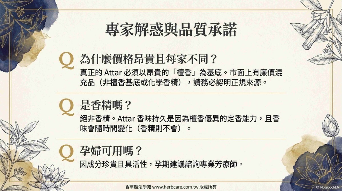 attar精油價格昂貴且來源稀有,因此attar愛好者在找尋時也會找到一些便宜的精油也稱為是attar,其實有幾個可能性: