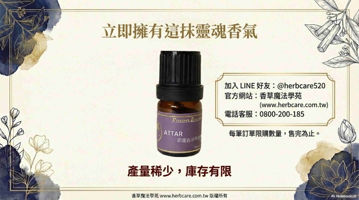 注意:Attar提煉法為自然植物緩慢蒸餾過程,如有類似花瓣花粉雜質實屬正常,介意者勿購。