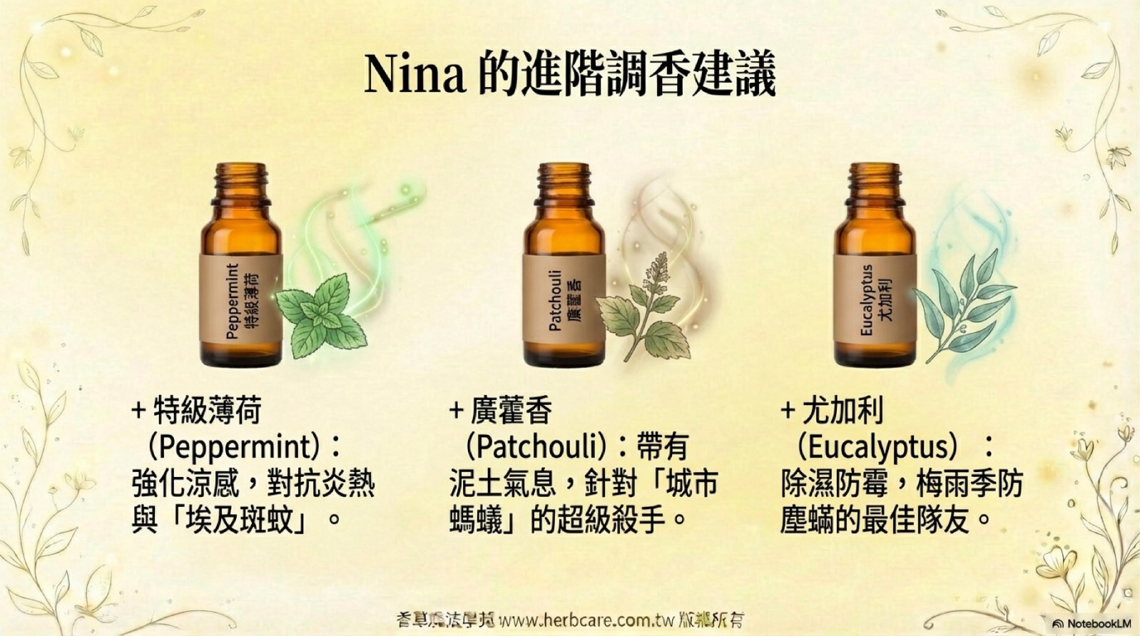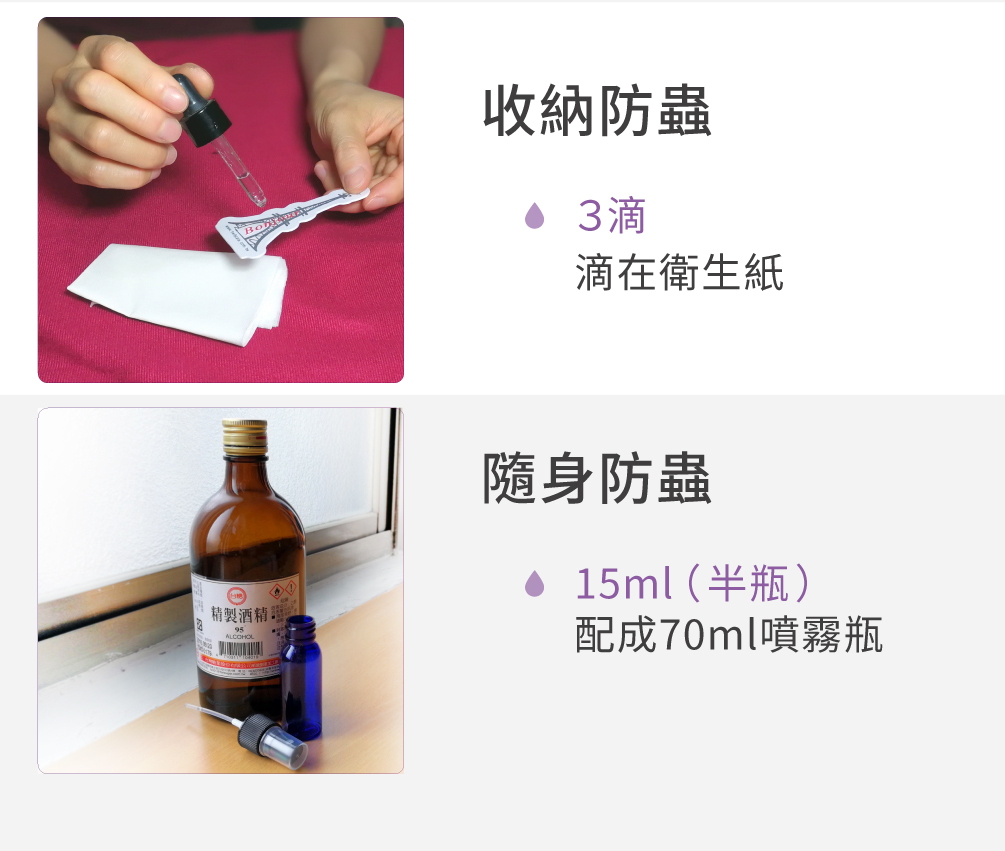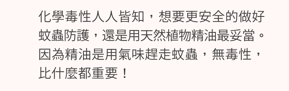 以上這些驅蟲家族的精油,您可以依照您的需求個別選購,自行DIY,也可以購買調和的複方防蟲精油,簡單省事。