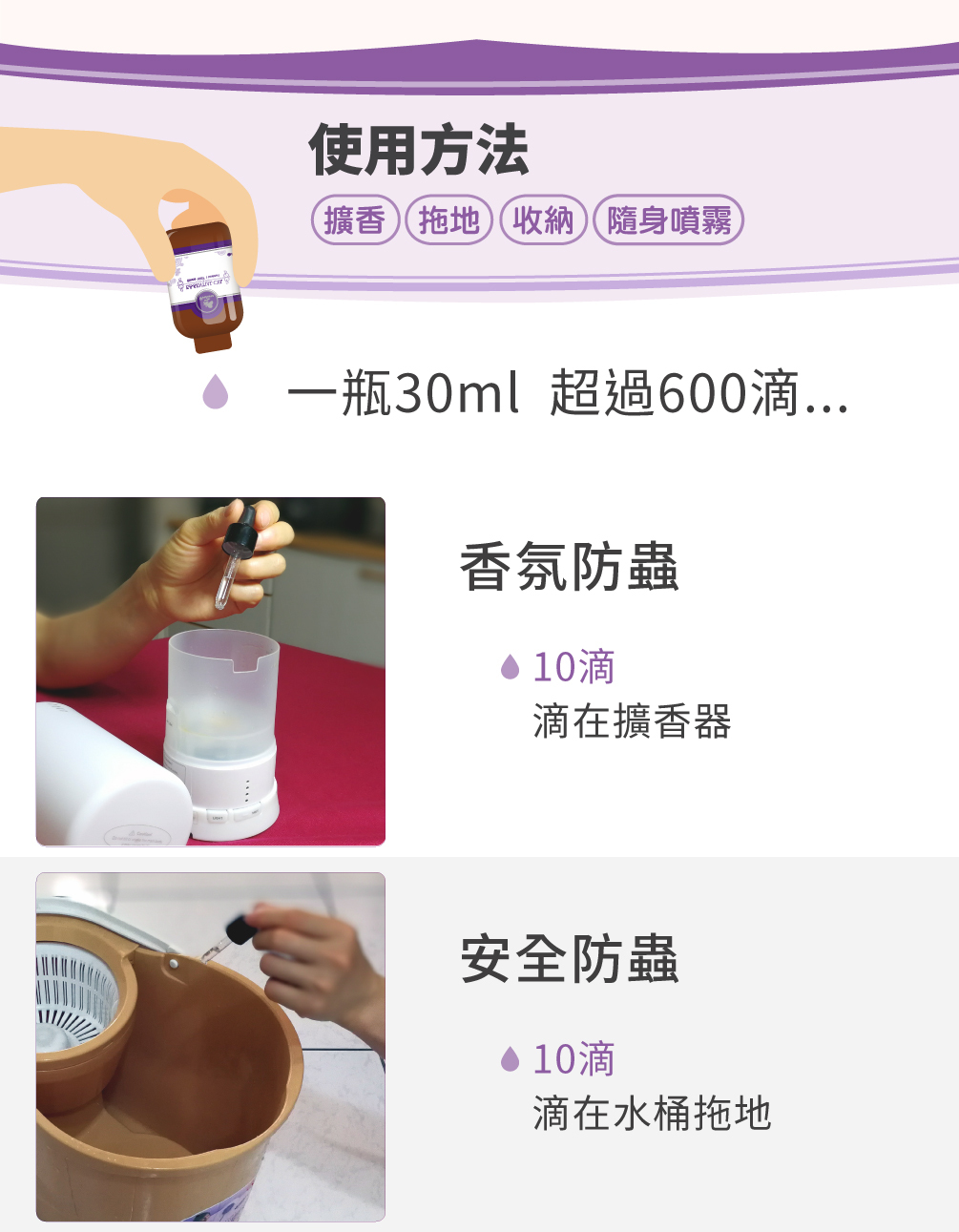 對蟑螂同時有效,檸檬香茅中含有的檸檬醛是昆蟲聞之變色的成分,加上檸檬香茅配方的防蟲精油,更顯威力!