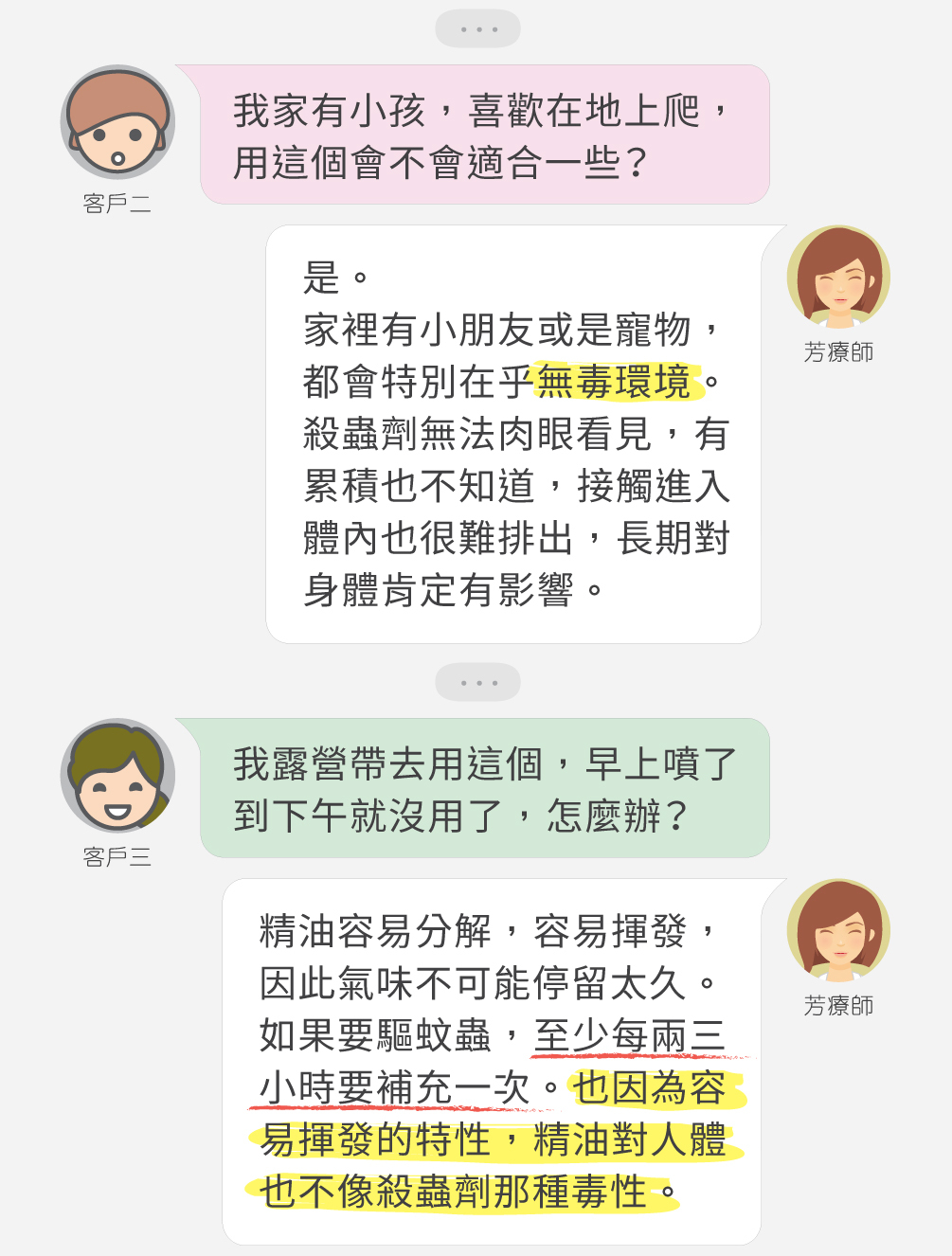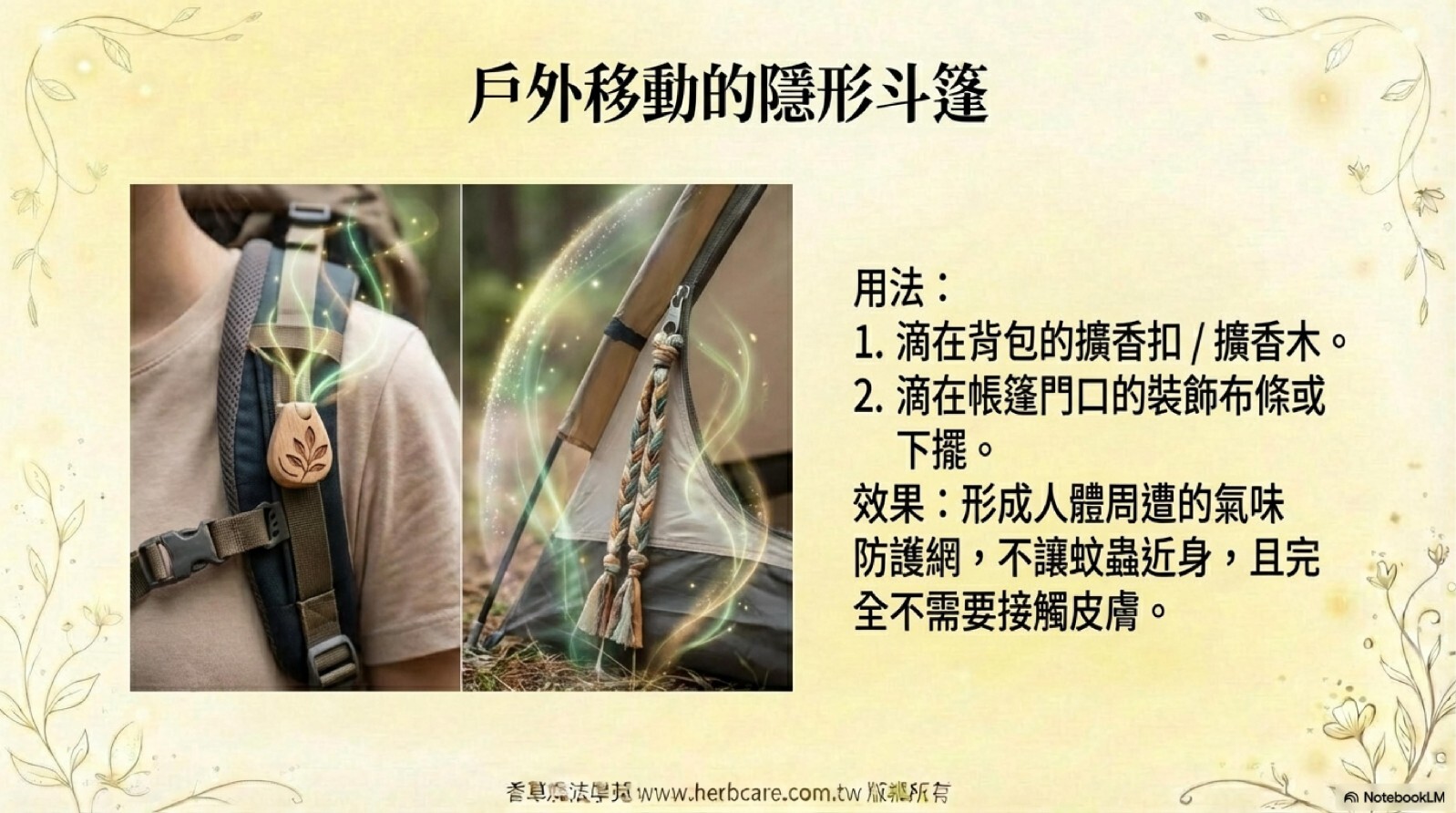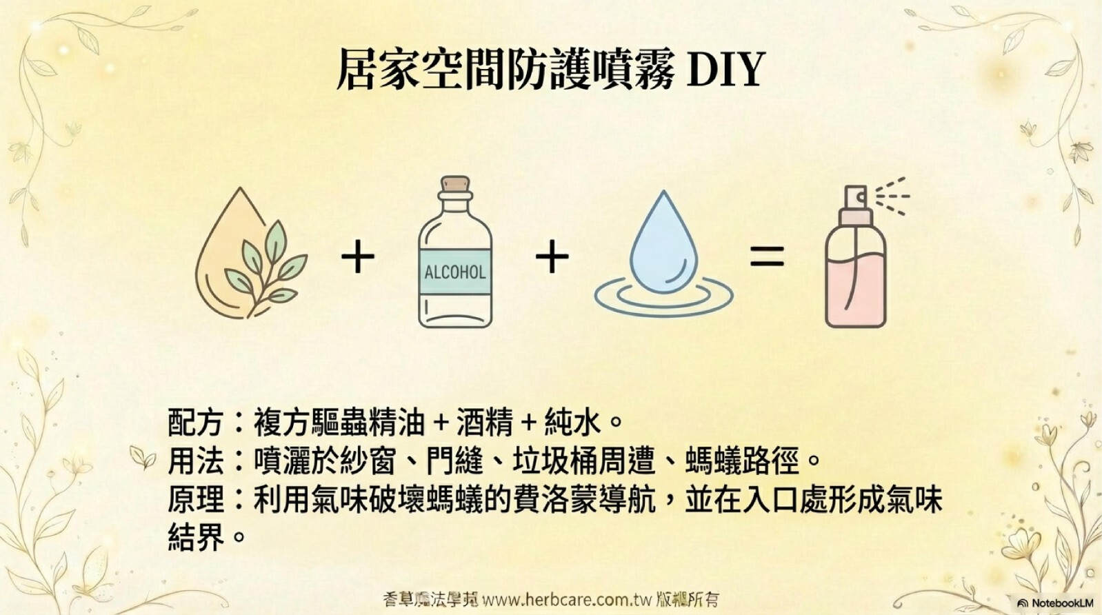 於是當場準備了防蟲精油,加上酒精跟水,做了精油的噴霧劑,
