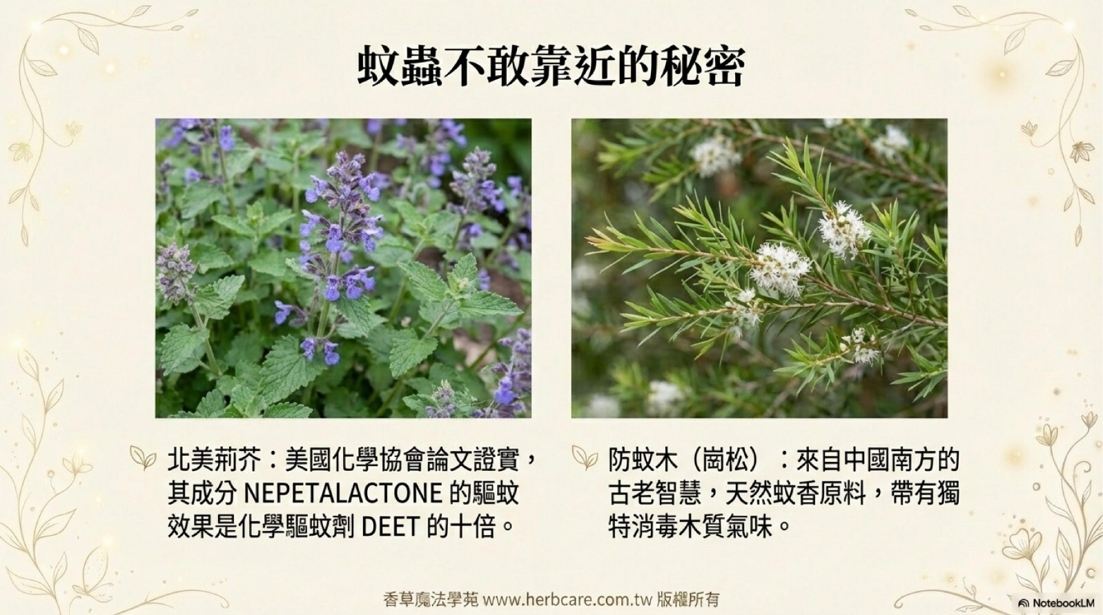 在台灣,蚊蟲與蟑螂正是最討厭的兩個夏日蟲害,雖然荊芥的成本價格,因為這篇論文而水漲船高,倍數漲價,但是為了能讓大家能享用它的驅蟲功力,學苑獨家引入,作為我們驅蟲配方中,重要的來源之一。