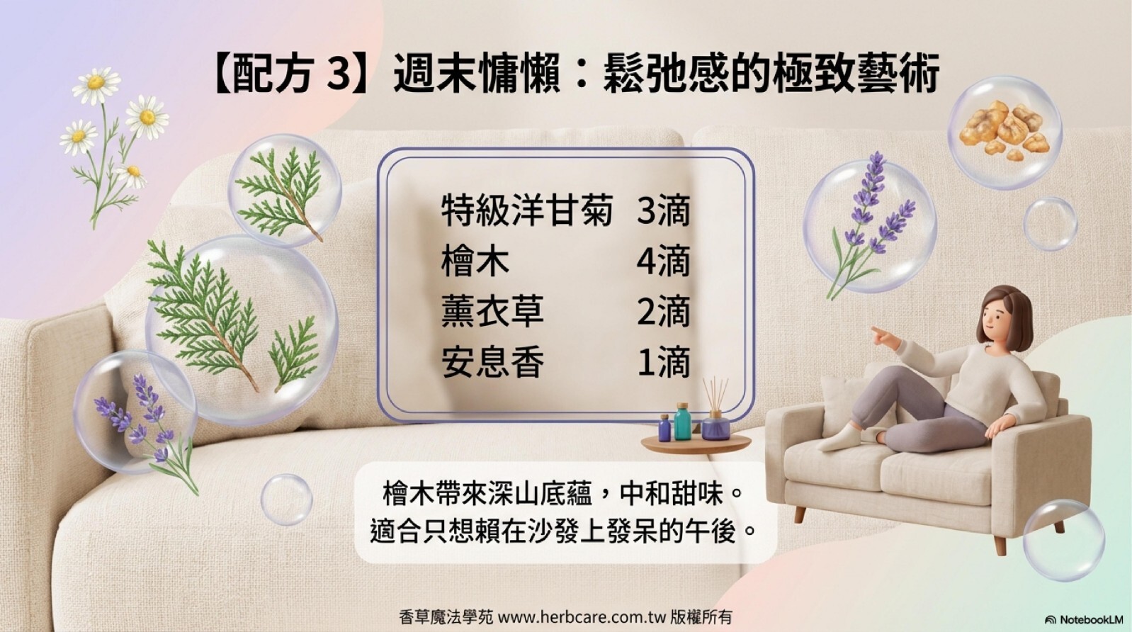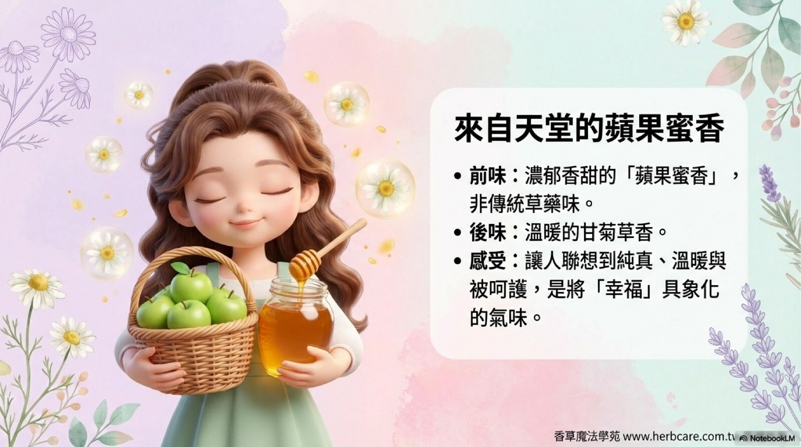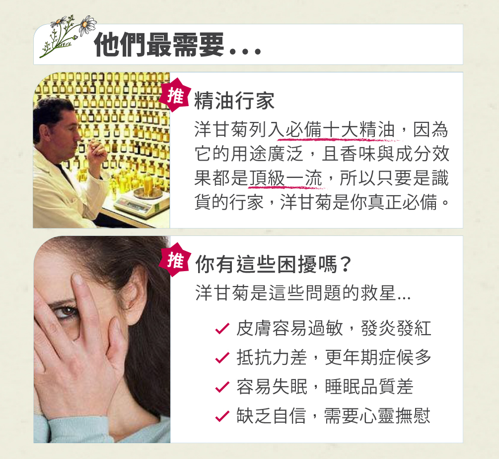 當然因為洋甘菊另一個特色:容易把別的香味轉化為它的香味,所以使用時的比例也要控制好。