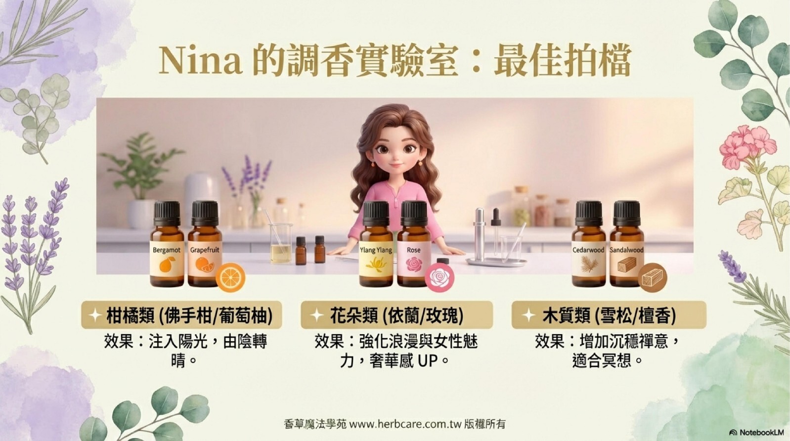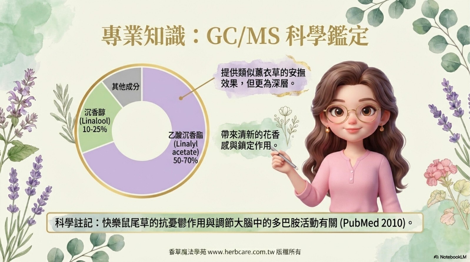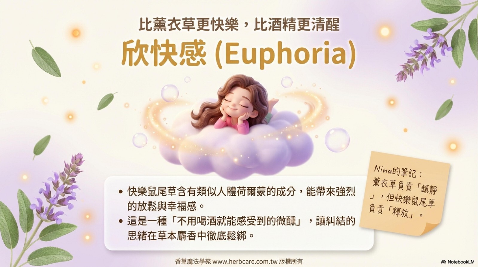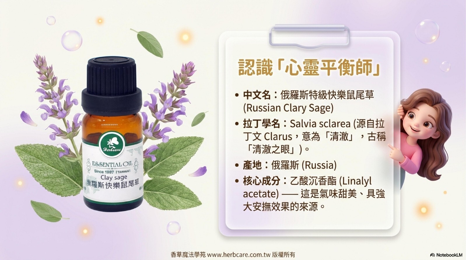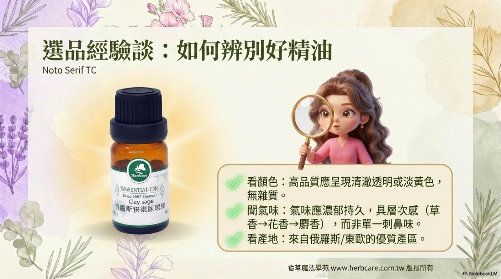 | Q1: 快樂鼠尾草精油聞起來為什麼會有帶點甜味的青草香? |