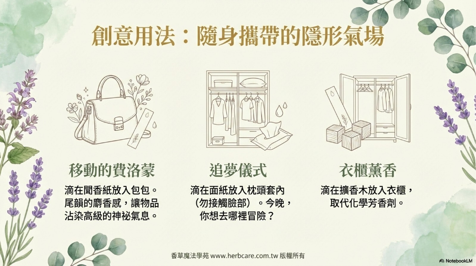 創立於20多年前,香草魔法學苑不只是個精油網站,更是由一群熱愛精油的同好共同打造的學習社群。我們相信,精油不只是商品,而是能優化身心靈的美好工具。因此,我們致力於「用知識包裝商品」,讓你先了解精油,再找到最適合你的選擇。