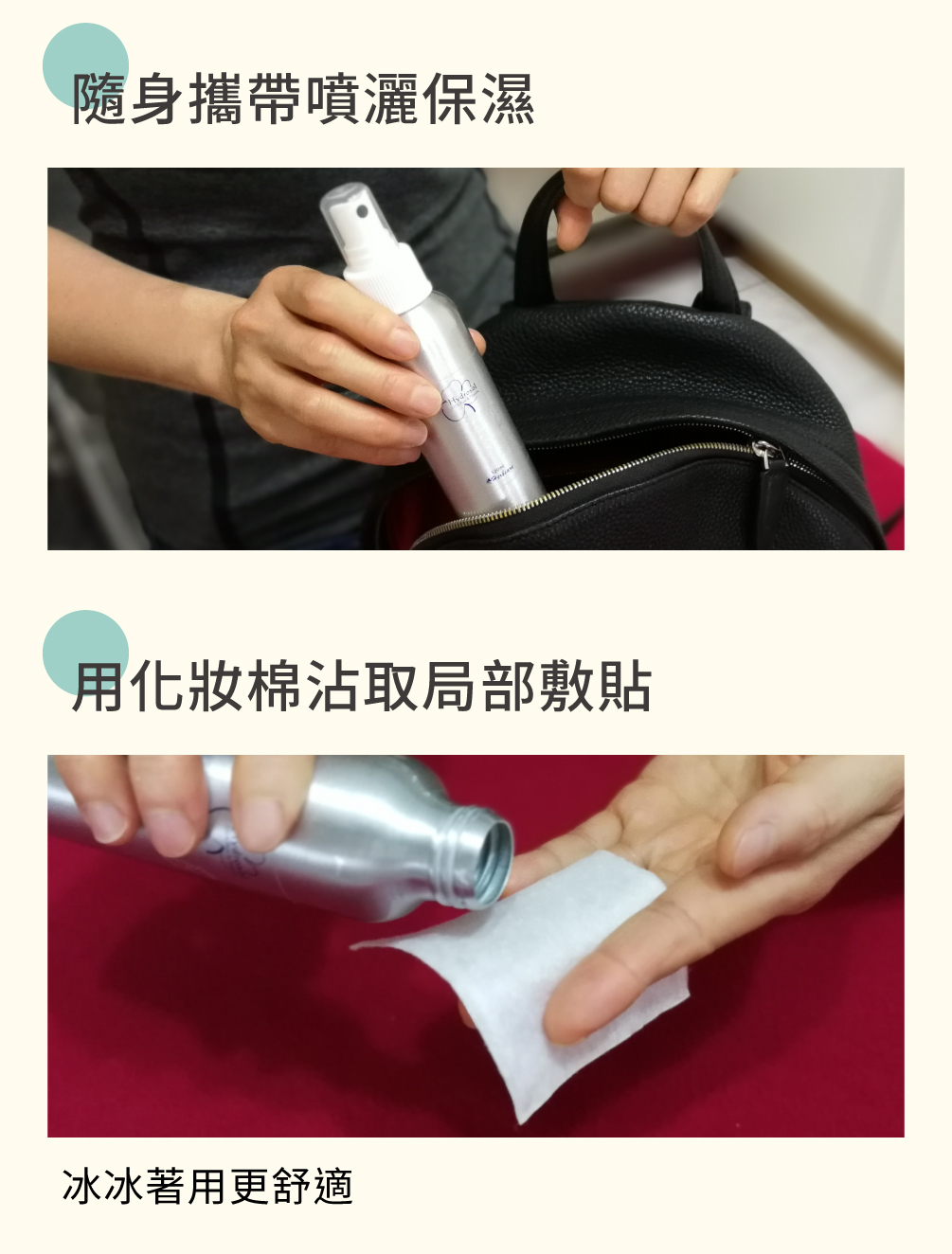眼周輕拍保養水:搭配無添加配方眼霜使用,有助鎮定敏感部位