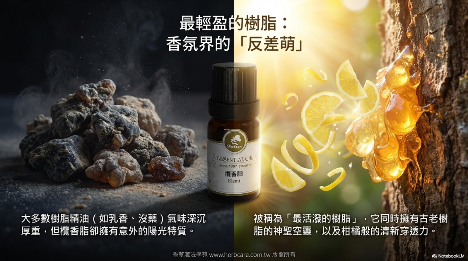 | 種類/品種差異 | 欖香脂精油主要來自於菲律賓欖香樹 (Canarium luzonicum),其成分中檸檬烯含量高,這是其淨化效果與清爽香氣的主要來源。 |