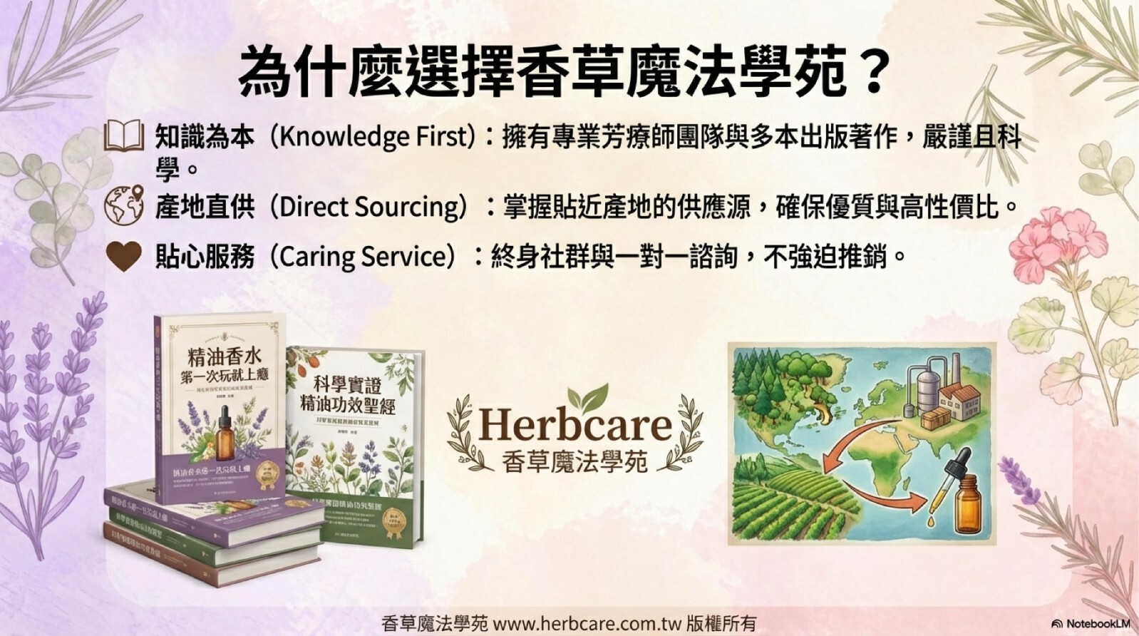創立於20多年前,香草魔法學苑不只是個精油網站,更是由一群熱愛精油的同好共同打造的學習社群。我們相信,精油不只是商品,而是能優化身心靈的美好工具。因此,我們致力於「用知識包裝商品」,讓你先了解精油,再找到最適合你的選擇。