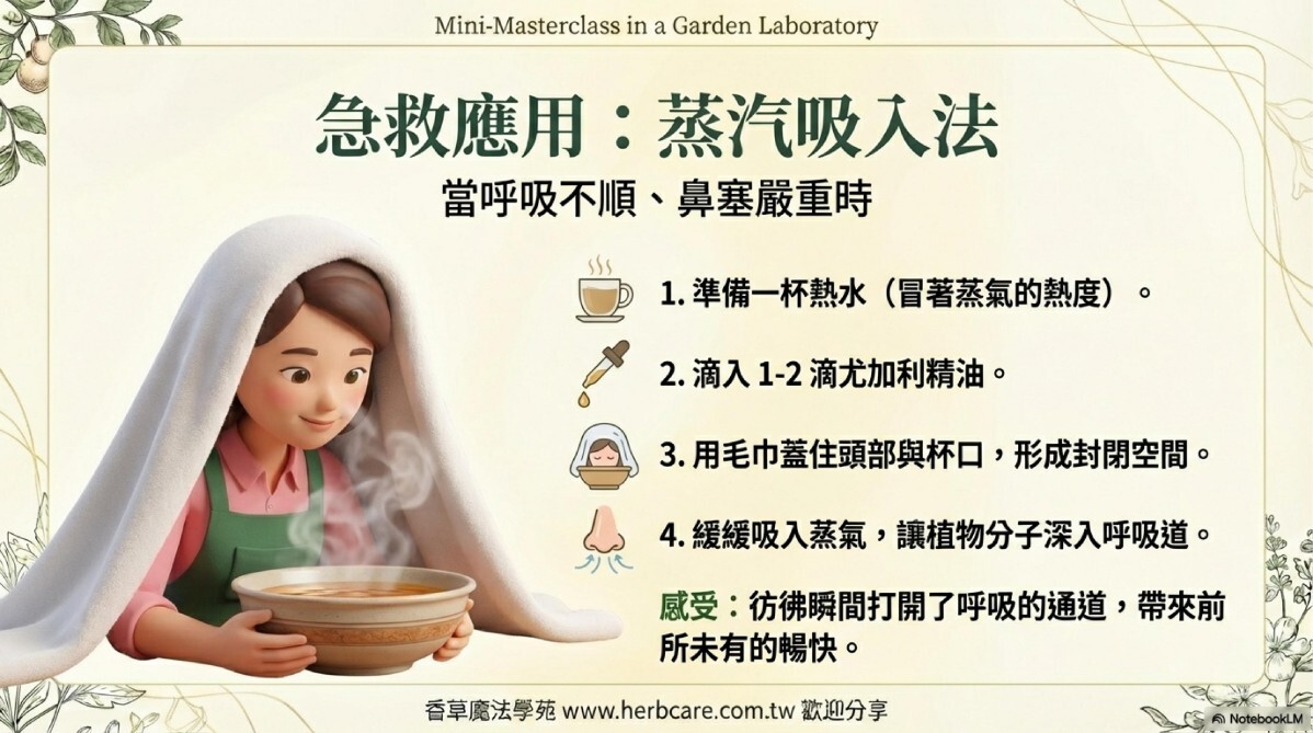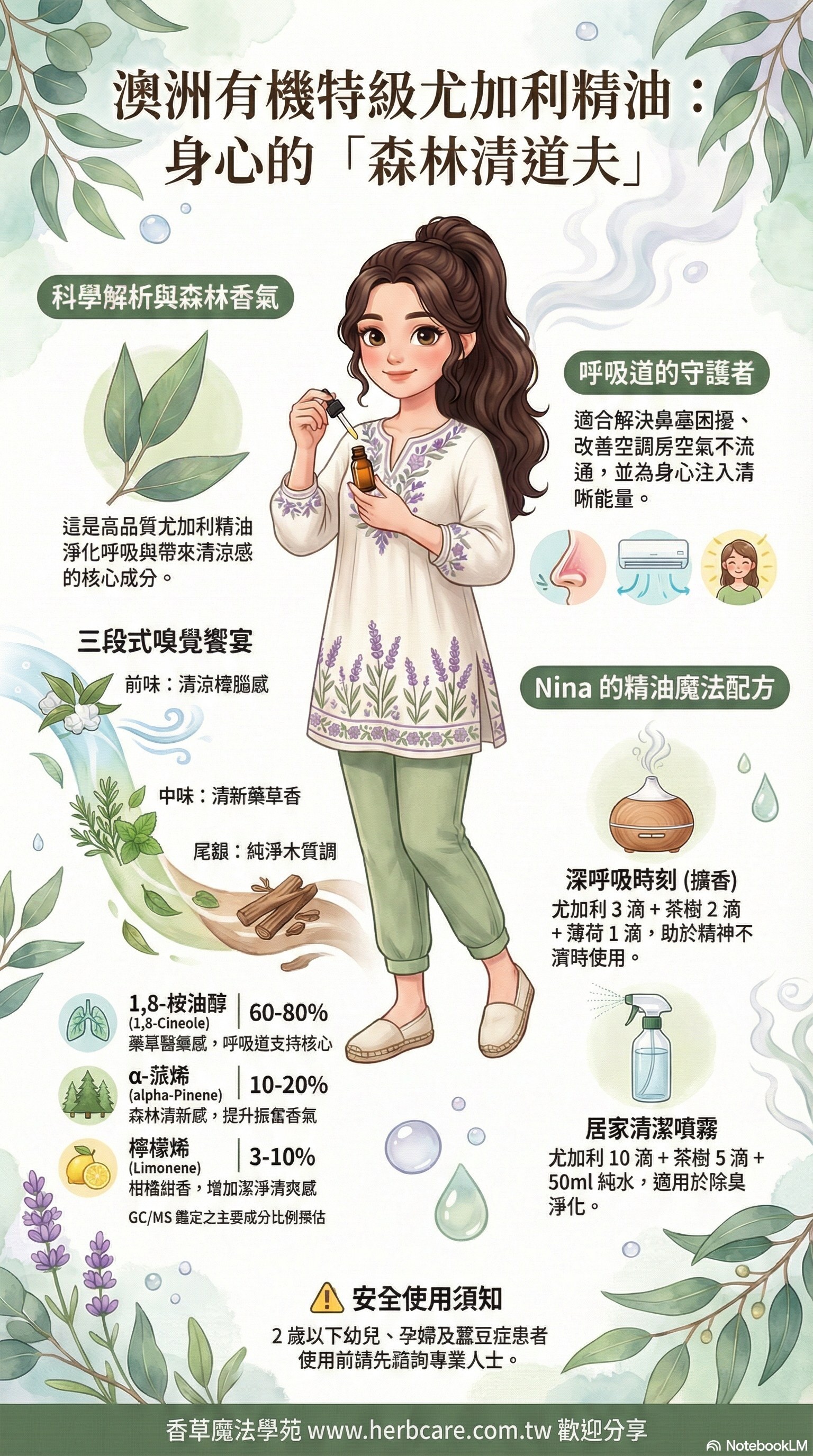 尤加利的香氣強烈、直接,彷彿能瞬間打開你的呼吸道。