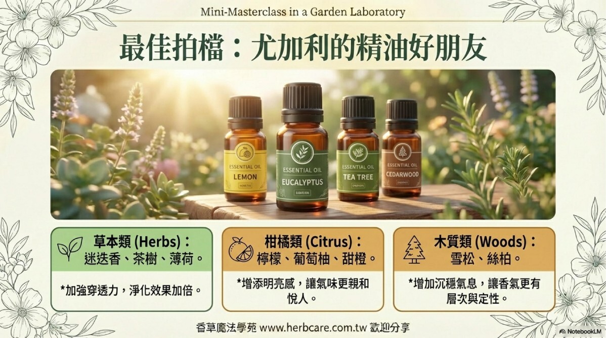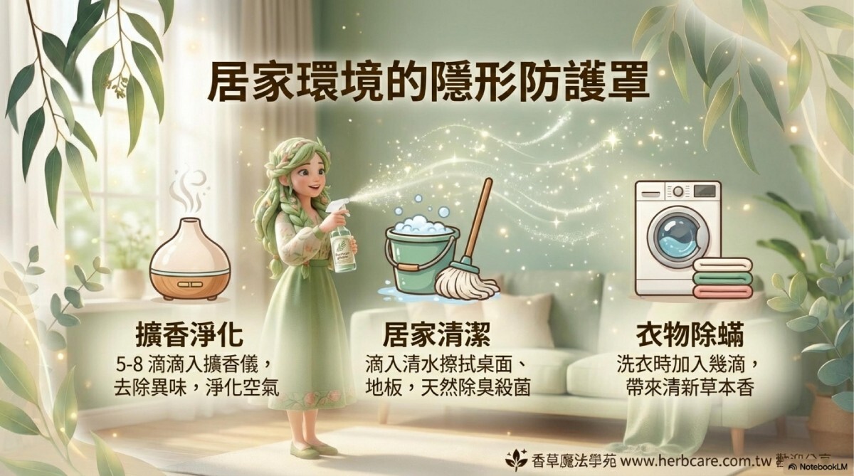 尤加利精油應用廣泛,不論是呼吸道護理或居家清潔,都能找到適合的搭配。