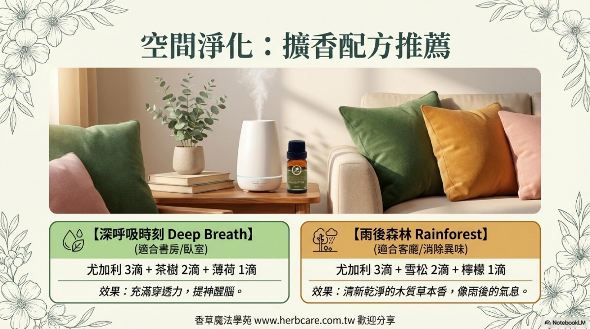 需求/時間點:當你感到呼吸不暢、頭腦昏沉時;或是想為居家環境消毒淨化時。