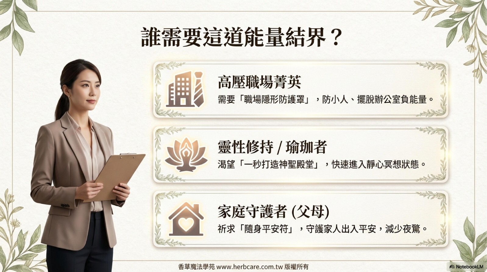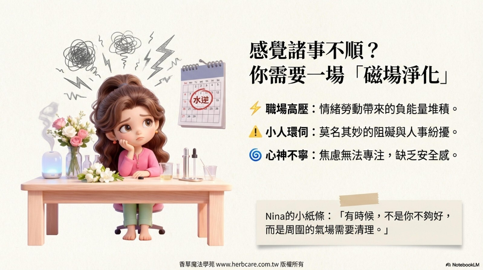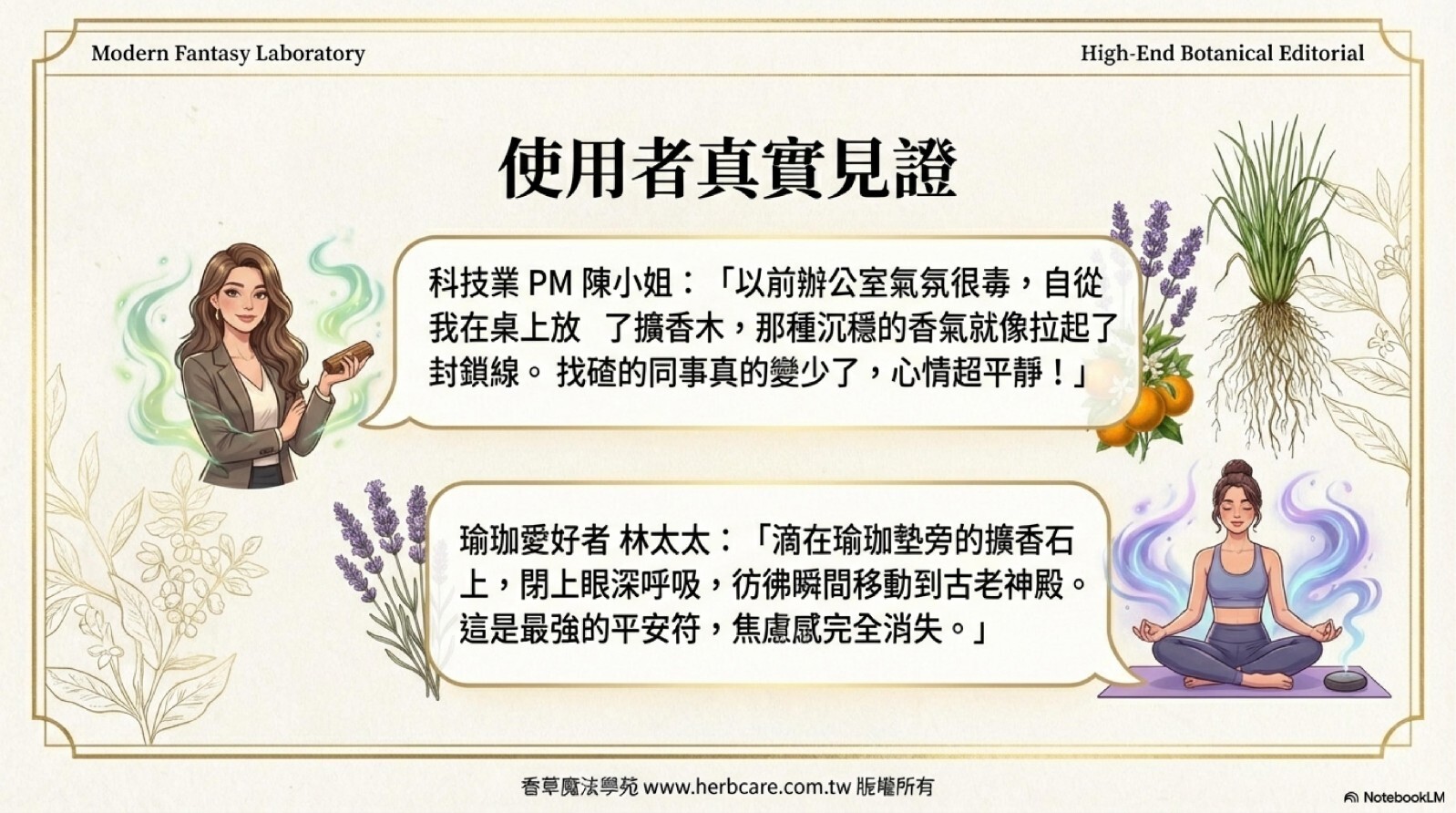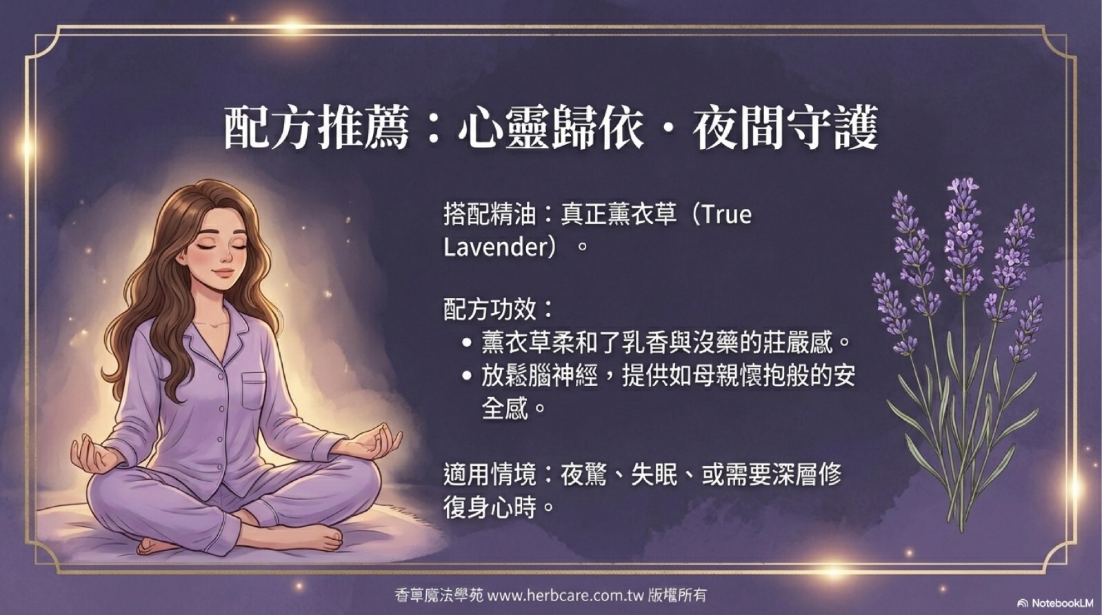 本精油配方為百分之百純植物提煉,絕無化學香精或其他雜質成分,同時奉勸使用者注意,避開來路不明或化學成分的東西,以免怠慢靈性,適得其反。