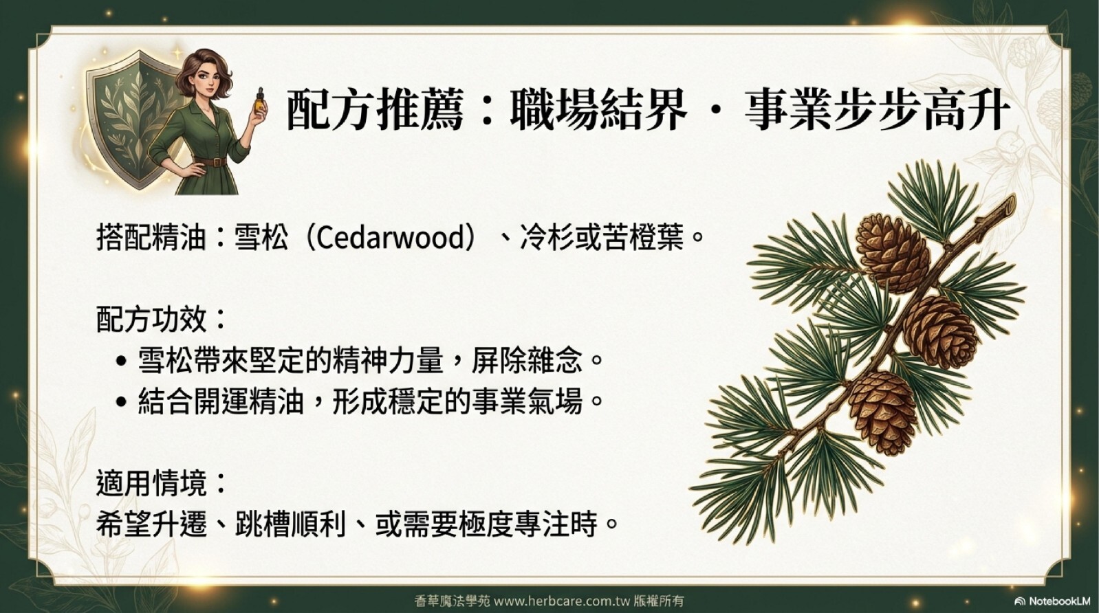 求事業運:不管是希望今年事業順利、步步高升的或是希望能跳巢成功、失業的也能找到個好的工作的的精油有:雪松、冷杉、苦橙葉