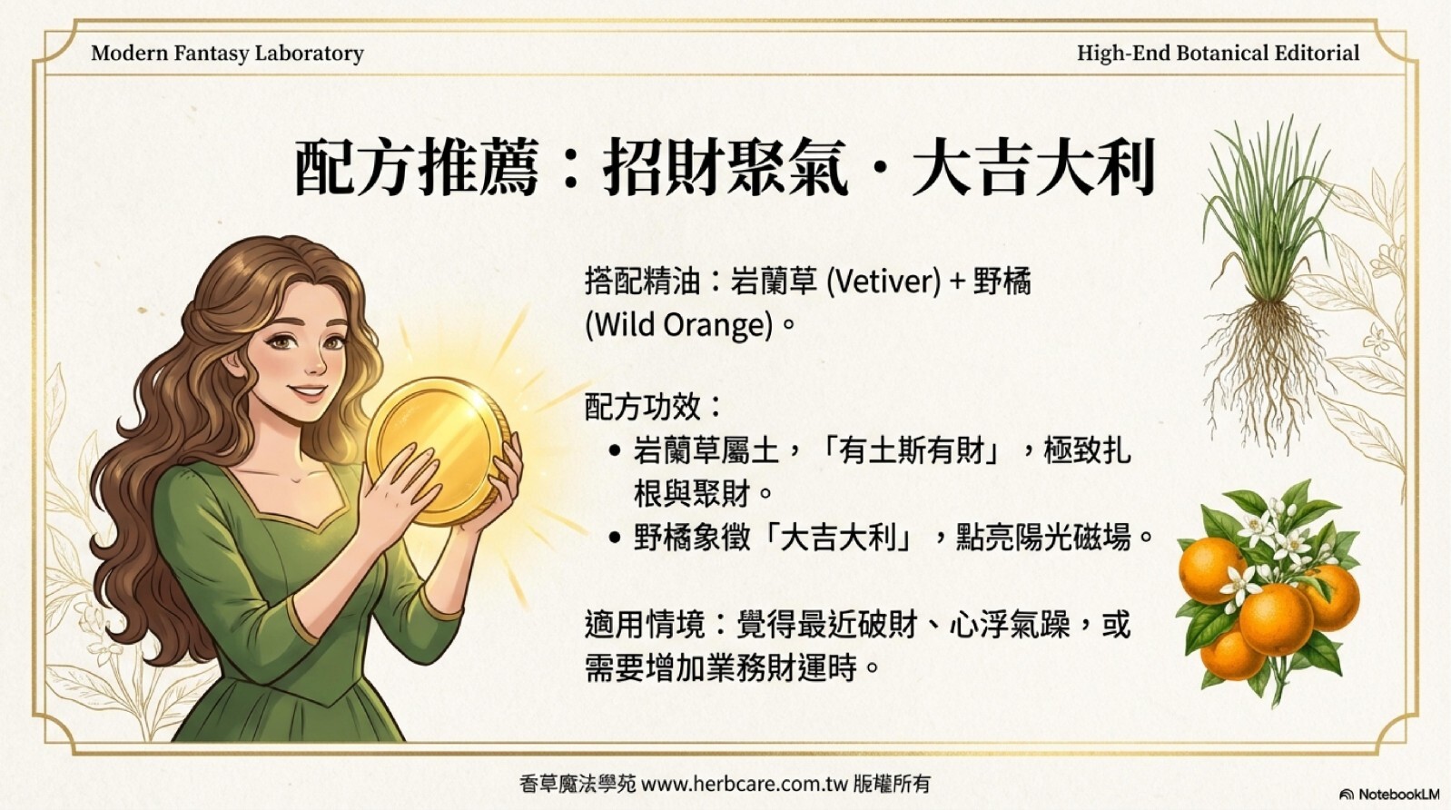求財運:岩蘭草、檀香