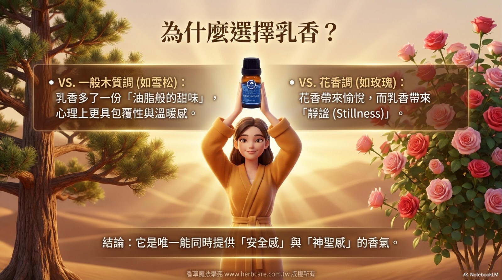 乳香的香氣層次豐富,充滿了深沉的古老氣息。