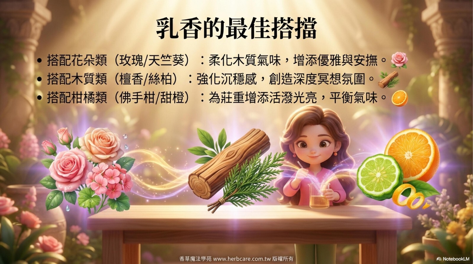 乳香的溫暖香氣,可以與多種精油創造出不同的應用效果。