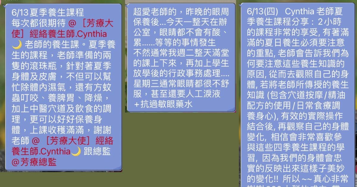 資深芳療師,芳療資歷八年,同為專業醫療人員、醫美保養品窗口顧問,以及中西藥房10年經驗,考過初階中醫課程,八年精油實證個案。