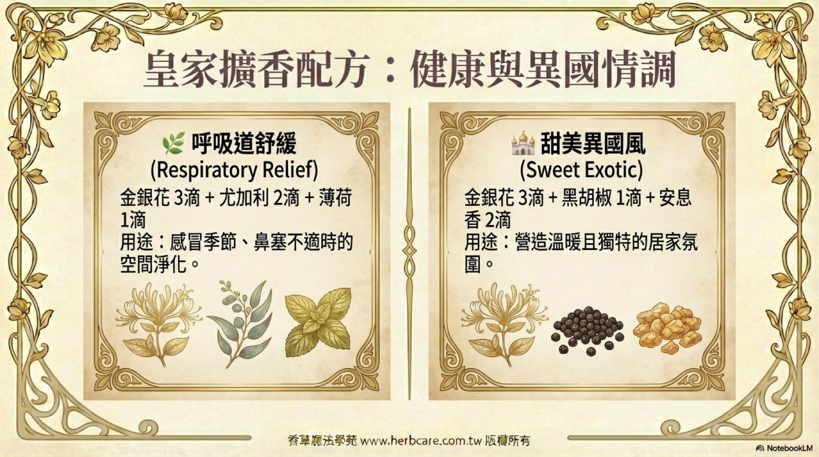 | 容光煥發 | 金銀花Attar精油3d+千葉玫瑰精油2d+檀香精油2d | 熟齡身心照顧 |