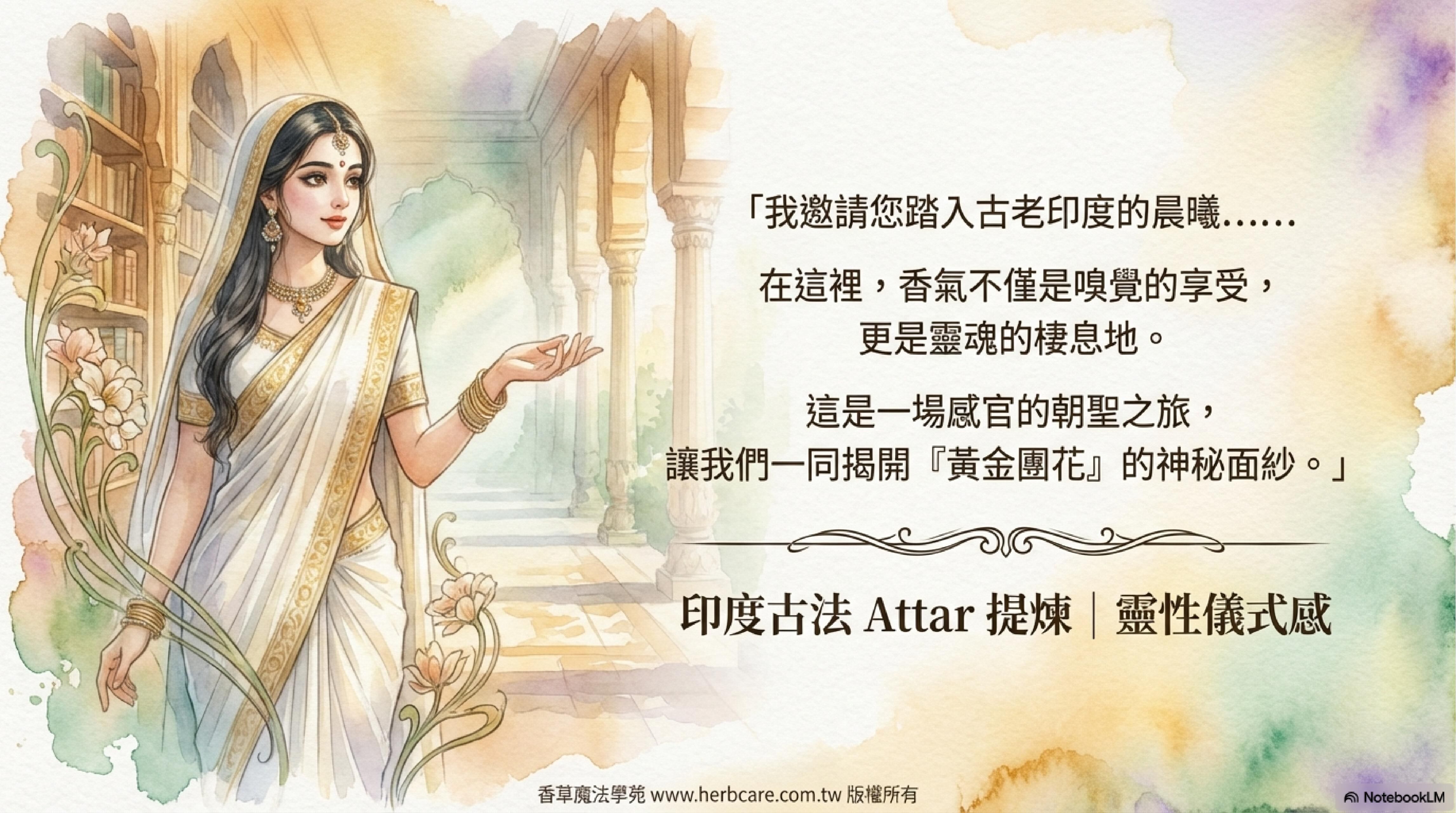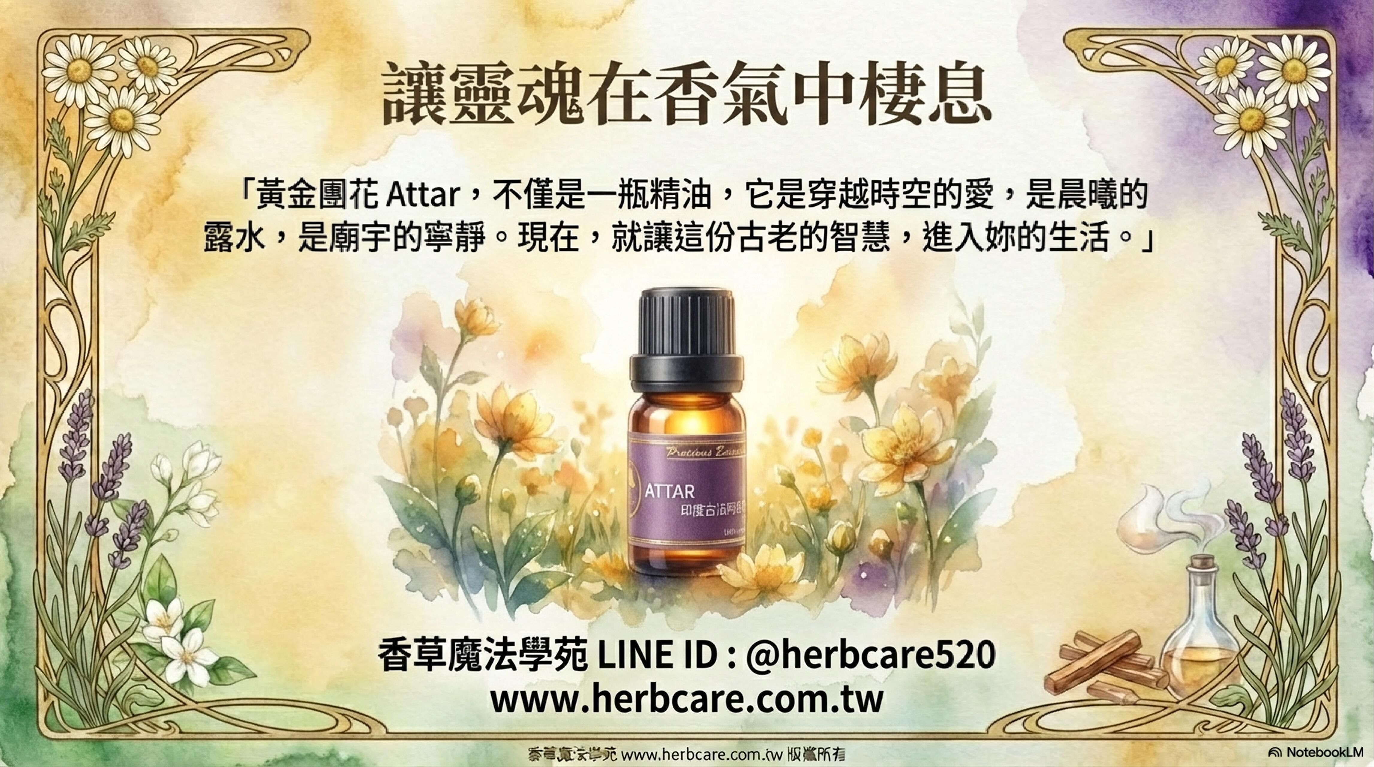 萃取自印度古老蒸餾工藝的黃金團花Attar精油,採集晨曦初綻黃金團花,獨特金環香韻從微酸清新漸變至蜜糖花香,終曲沉澱為寺廟供香的靈性餘韻,特別推薦給追求靈性儀式感的智慧女性。