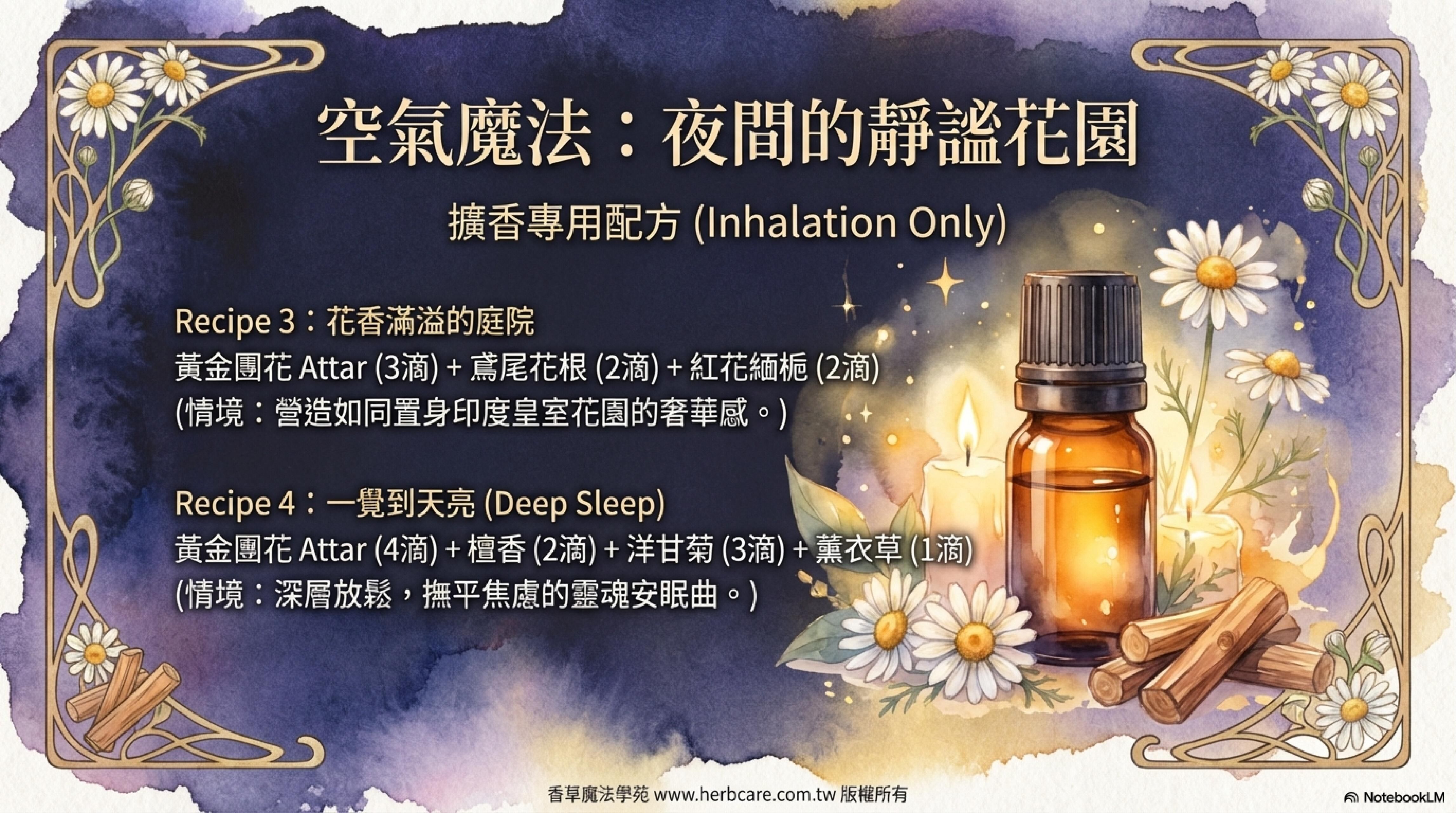| 東方美人 | 黃金團花Attar精油3d+玫瑰精油2d+茶樹精油2d+乳香精油1d | 秋冬寒意時的香氛滋潤 |