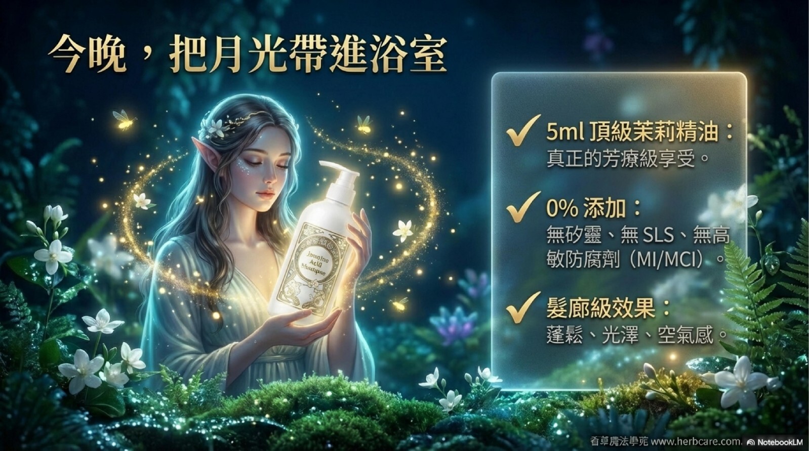 捕捉月光下綻放的茉莉,將夜間的浪漫注入每一次洗髮儀式。