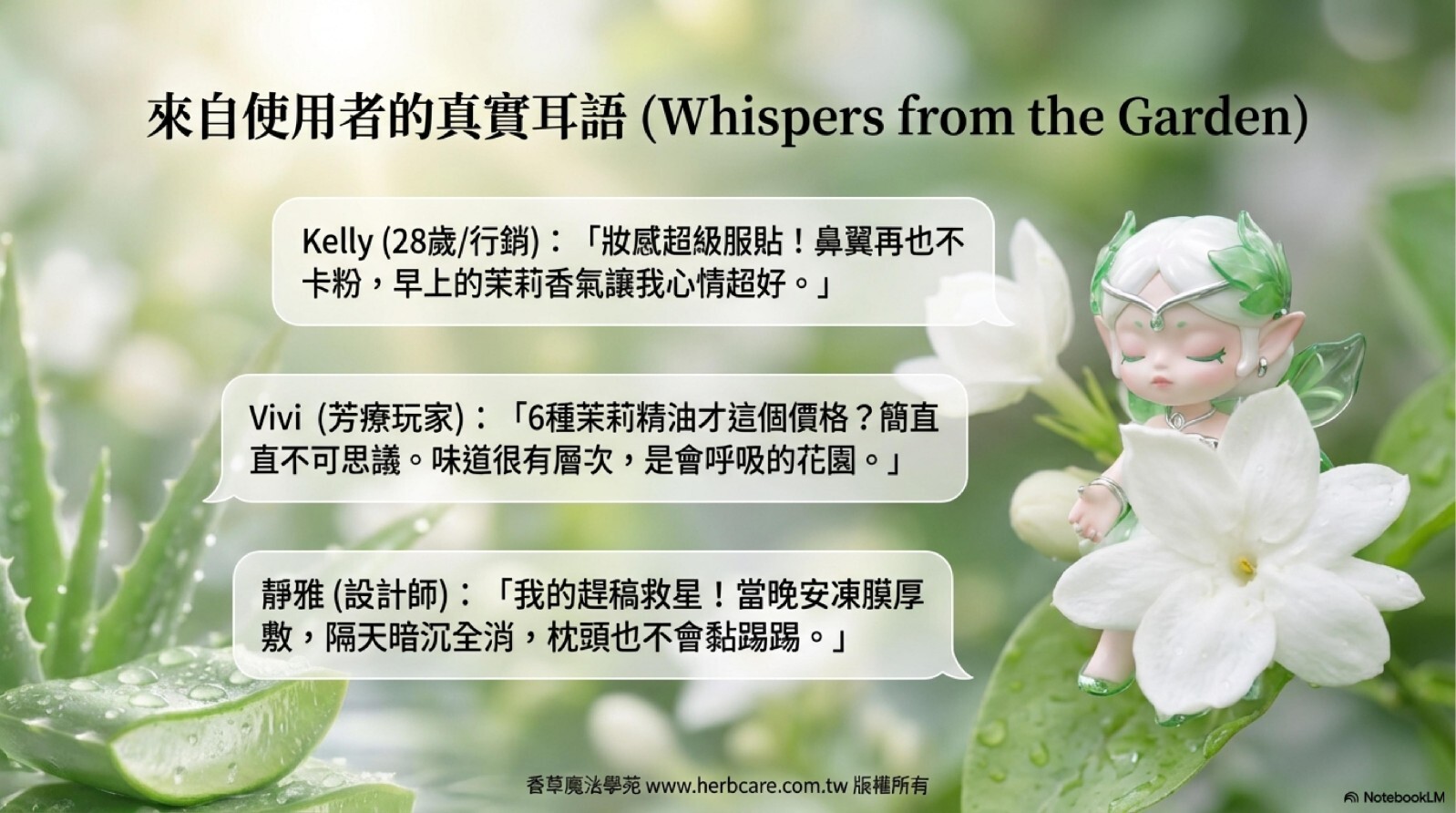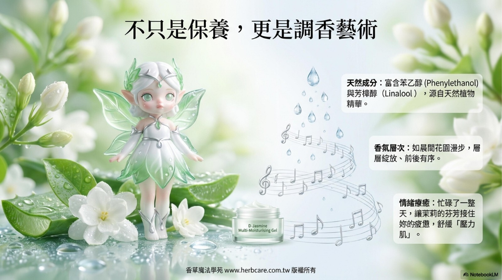 蘊含大花茉莉、小花茉莉、夜香茉莉、印度茉莉、珊瑚茉莉、繡球茉莉等6款茉莉珍稀品種的凝練精華,以黃金比例調製出如晨露般輕盈的水感凝膠,富含苯乙醇、芳樟醇與天然酯類,深層滋養、舒緩提亮,還有助於修復乾燥脫皮與壓力型膚況。凝膠質地如絲綢般延展,觸感冰涼柔滑,一抹瞬間滲入乾涸肌層,留住柔嫩與花香,享受極致柔潤的肌膚盛宴。不僅補水,還鎖水,不只滋潤,更溫柔撫慰你整天疲憊的臉龐與情緒。