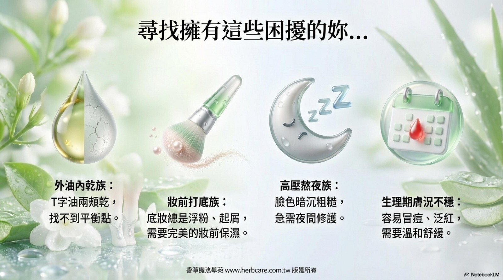 適合膚質: 所有膚質,尤其油性、經期易冒痘、暗沉、常化妝者