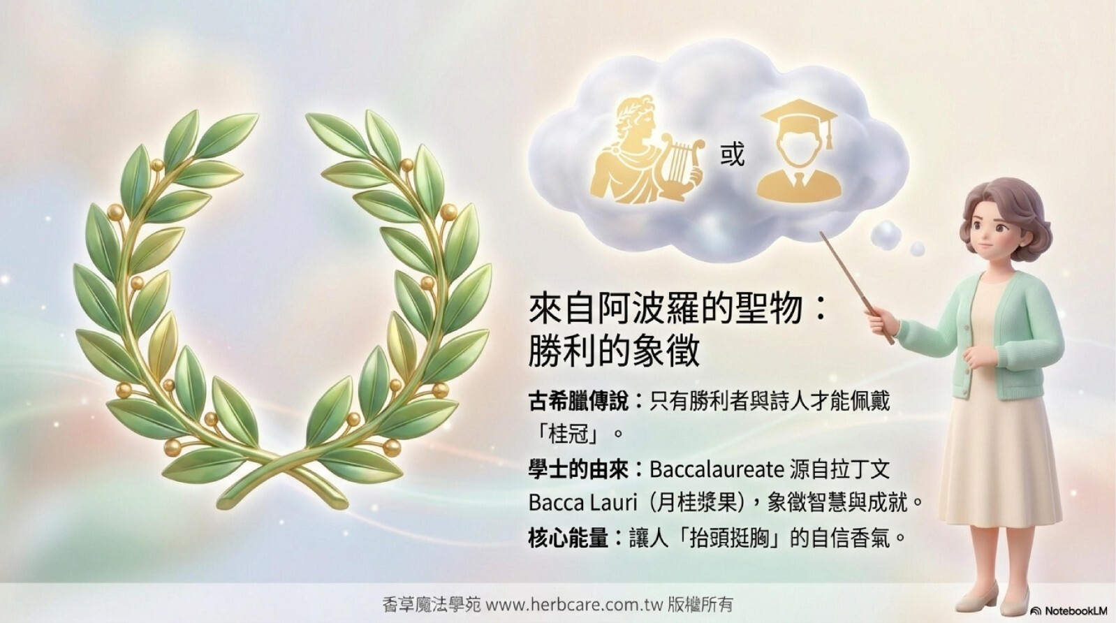 月桂的香氣就像一位穿著白袍的智者,既嚴肅又充滿關懷。