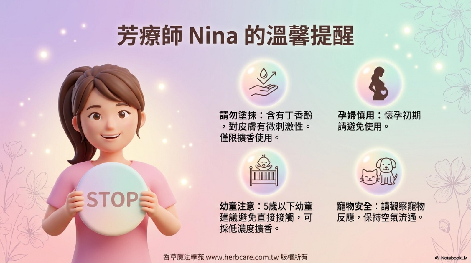 | Methyleugenol (甲基丁香酚) | 少量 | 賦予月桂獨特的辛香調與溫暖感,能促進循環與流動。(因安全性考量,需注意濃度) |