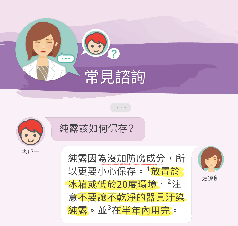 純露因為不含防腐劑或是消毒酒精,且為植物蒸餾成分,會含有植物精華有機成分,所以要注意保存。