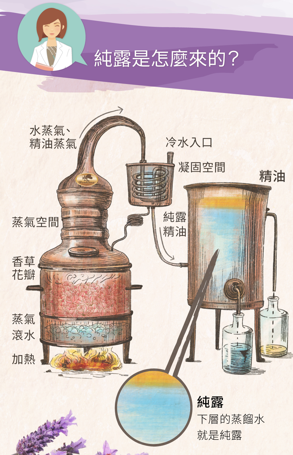 純露可以做為保養使用,但是跟市面上一般的爽膚水、保濕水不同,純露就是最原始最直接的原料,而保濕水爽膚水一般都會添加各種成分。