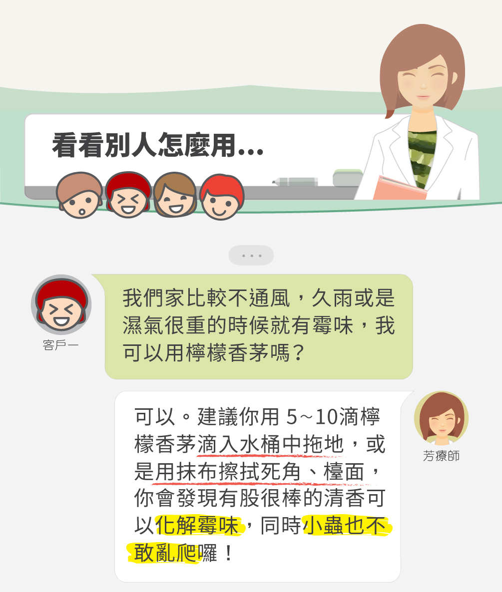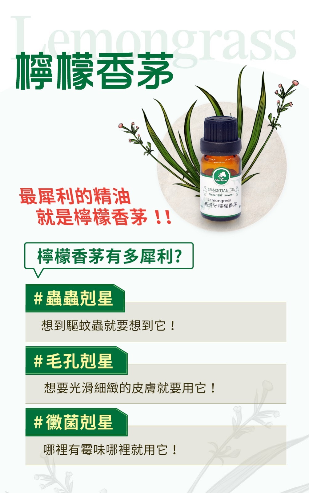 | A2: 不建議直接塗抹純精油。檸檬香茅精油的成分非常刺激,請謹慎使用。 |