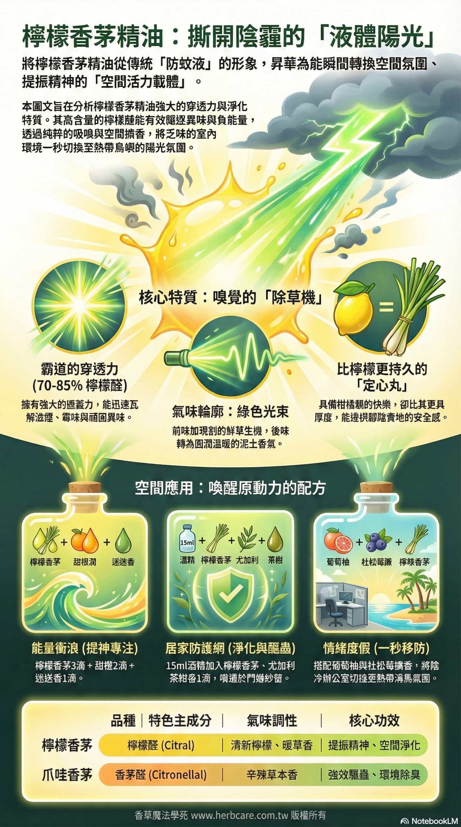檸檬香茅精油應用廣泛,不論是提振精神或居家清潔,都能找到適合的搭配。