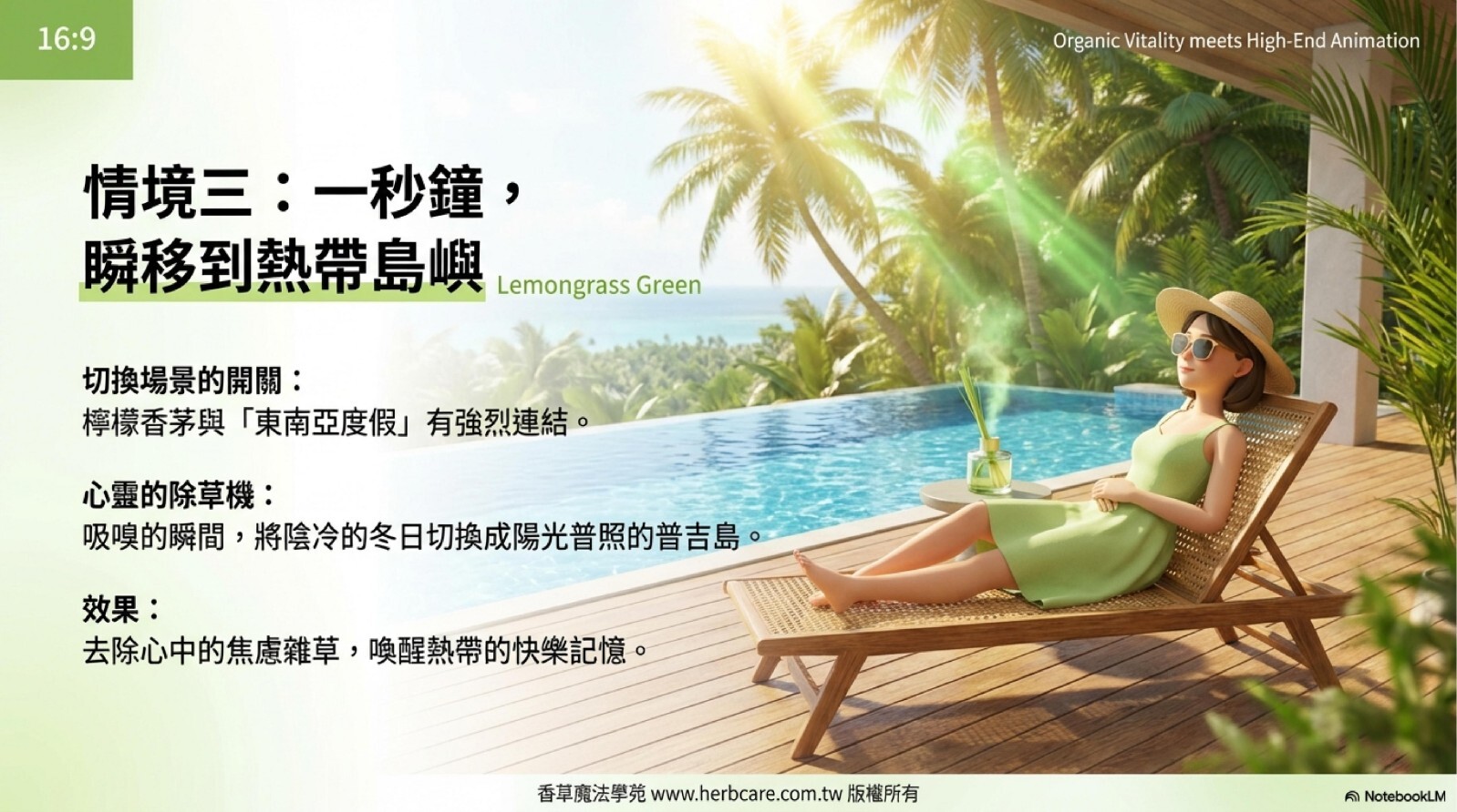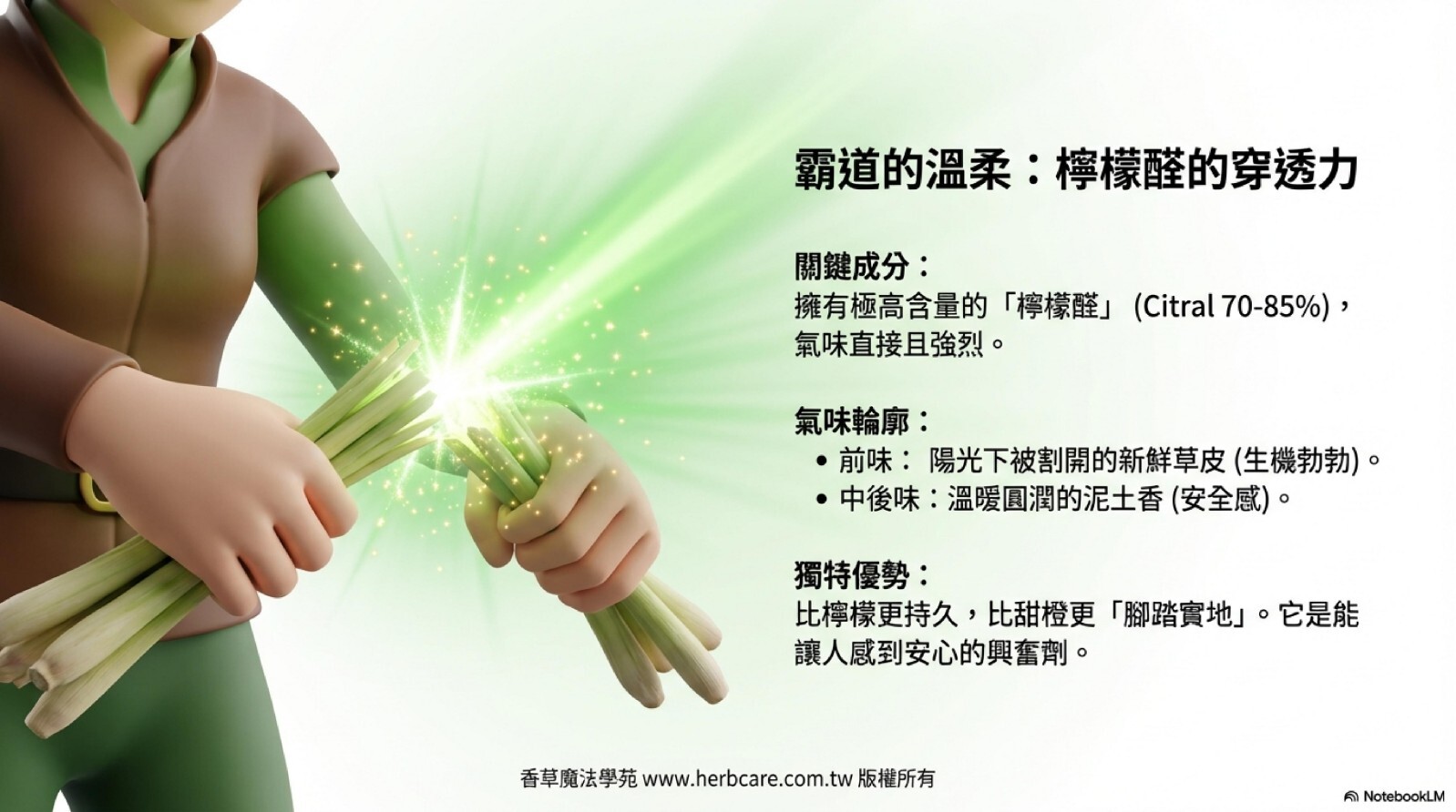檸檬香茅的香氣直接而強烈,充滿了熱帶植物的生命力。