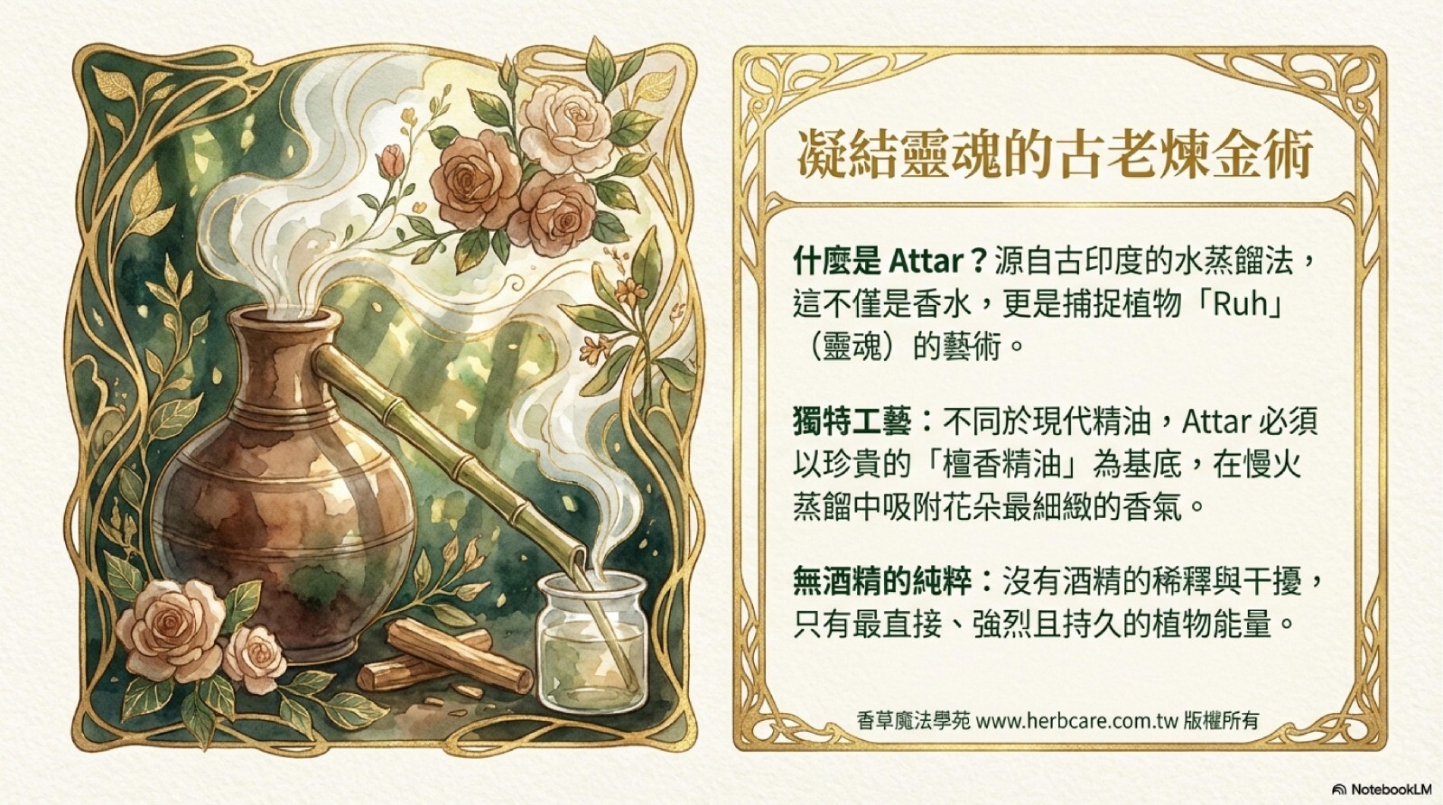 對原產地印度及主要使用市場伊斯蘭國家來說,香水也是一種藥,是針對身心靈各方面都有作用的,所以一開始我們就把香水與靈藥當作阿塔的定義。