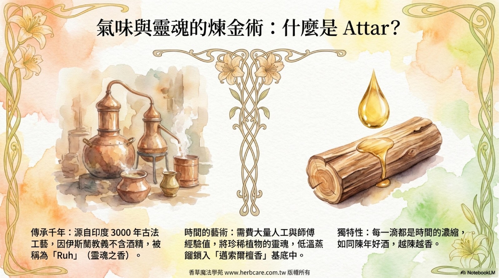 對原產地印度及主要使用市場伊斯蘭國家來說,香水也是一種藥,是針對身心靈各方面都有作用的,所以一開始我們就把香水與靈藥當作阿塔的定義。