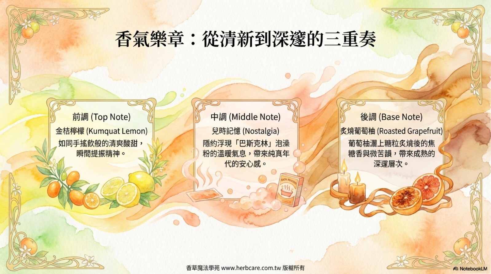 遵循印度千年Attar古法工藝,精選多種頂級柑橘果實,以複方調配藝術呈現「榨汁爆漿」等級的鮮活果香。獨創「果香三重奏」從金桔檸檬漸變至巴斯克林泡澡粉回憶,終曲沉澱為炙燒葡萄柚的深邃餘韻。特別推薦給追求鮮活愉悅與陽光能量的香氛愛好者。