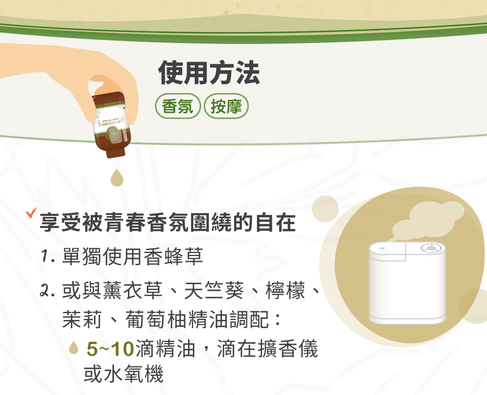 香蜂草精油應用廣泛,不論是身心靈放鬆或肌膚保養,都能找到適合的搭配。