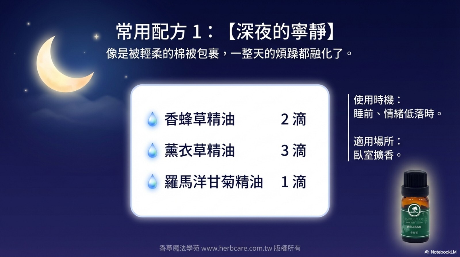 需求/時間點:當你感到情緒緊繃、心神不寧時;或是想在睡前、沐浴時,為自己創造一個寧靜的空間。