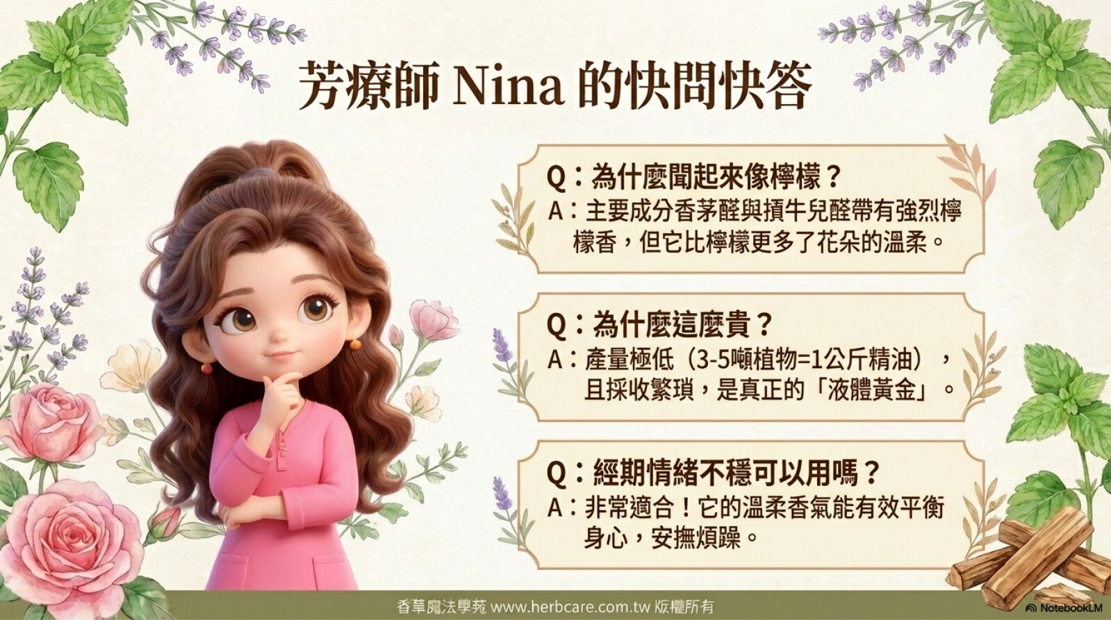 | Q4: 為什麼香蜂草精油聞起來會有一點檸檬味? |