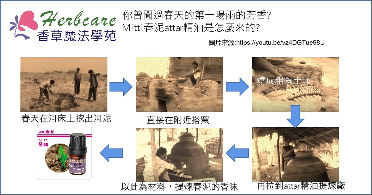 取自春天河床的沉積泥,先用火窯燒成土陶碟,再運至提煉廠古法提煉,也只有attar才能提煉出獨一無二的泥土芬芳。頂級春泥與春泥之不同在於使用的檀香精油為更優的特級檀香,因此整體在品質有更強的升級,香氣上可以感受到很明顯的春泥與檀香交互,這與一般的attar精油不同,因為一般的attar精油使用的檀香只是為了「吸味」,也就是留住提煉對象的香氣為主,所以使用的檀香精油香氣並不明顯,但因印度人非常喜歡春泥且用途也非常廣,所以特別有這個頂級春泥的版本,這是我們直接從印度attar提煉廠採訪、取樣所得,數量不多,以分享有心人為主。