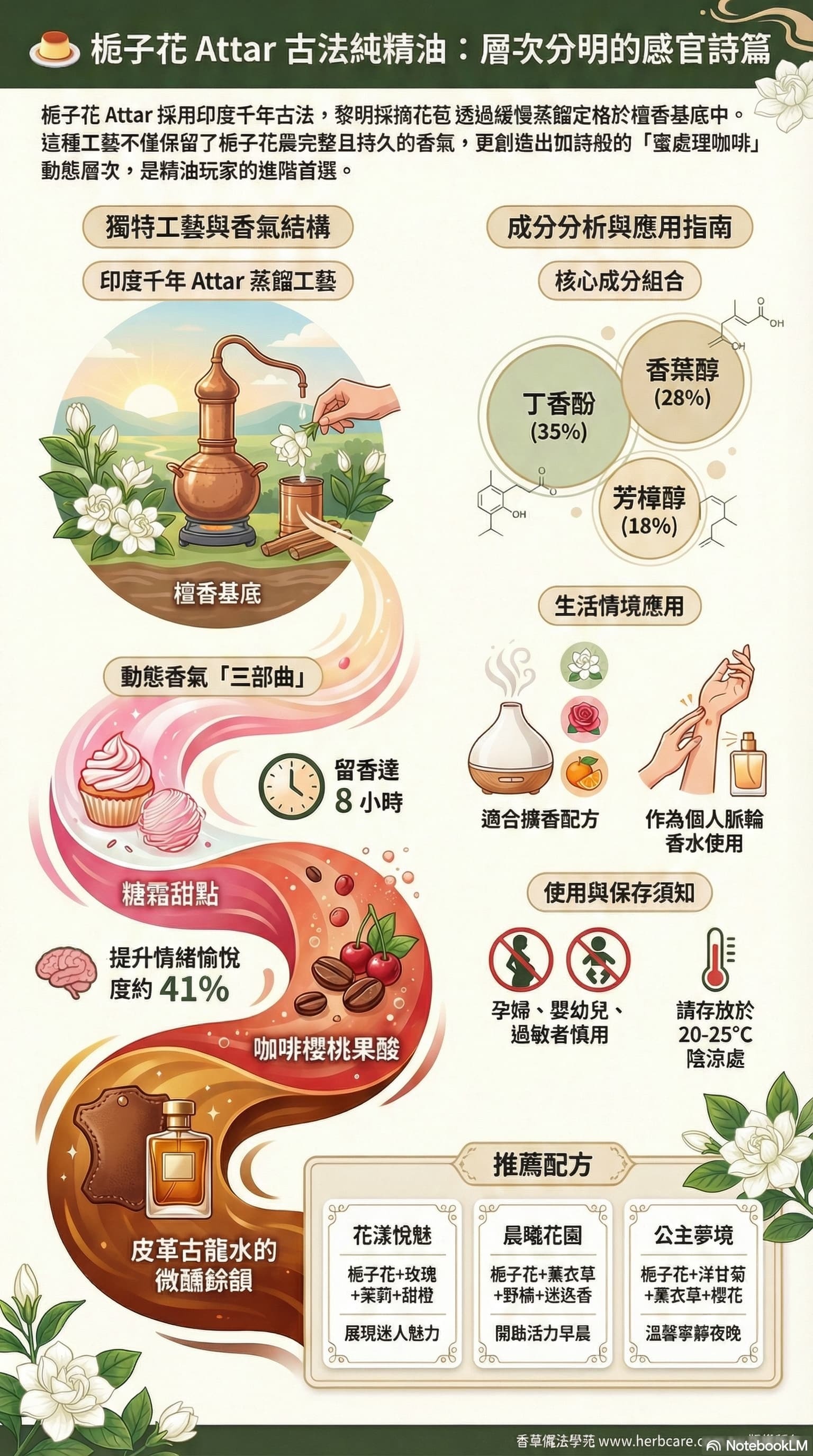 | 花漾悅魅 | 梔子花Attar精油3d+玫瑰精油3d+茉莉精油2d+甜橙精油2d |